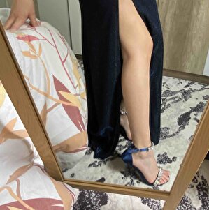 Tek Bant Bilek Taşlı Lacivert Saten 11cm Topuklu Kadın Ayakkabı Tek Bant Bilek Taşlı Lacivert Saten 11cm Topuklu Kadın Ayakkabı LA-02Cristina 40