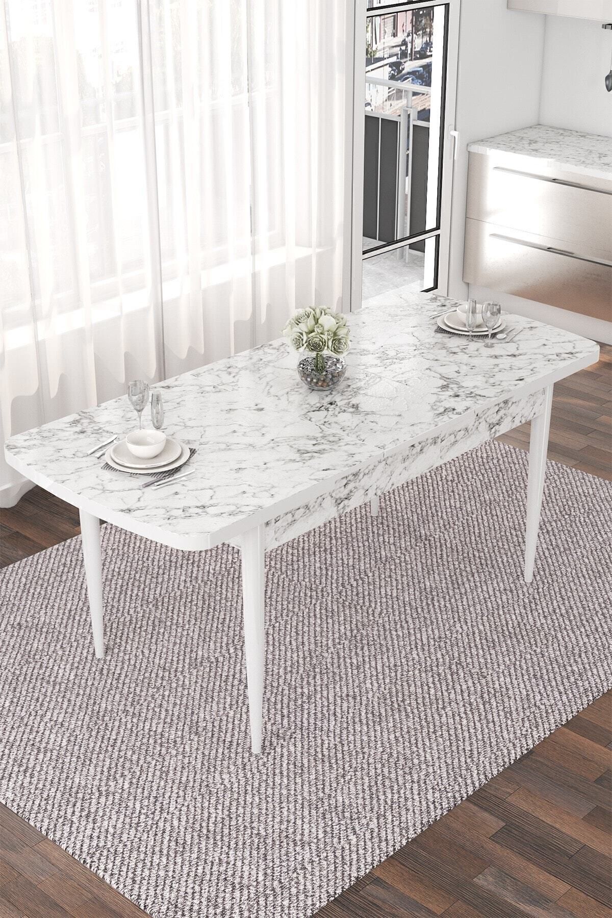 Nef Serisi 70x114 Açılabilir Mdf Beyaz Mermer Desen Mutfak Masası Nef Serisi 70x114 Açılabilir Mdf Beyaz Mermer Desen Mutfak Masası PRA-5388149-135547 تک سایز