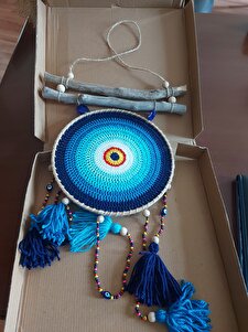Maromenis Nazar Boncuğu Düş Kapanı Makrome Duvar Süsü Maromenis Nazar Boncuğu Düş Kapanı Makrome Duvar Süsü NZRDVRSS0015 تک سایز