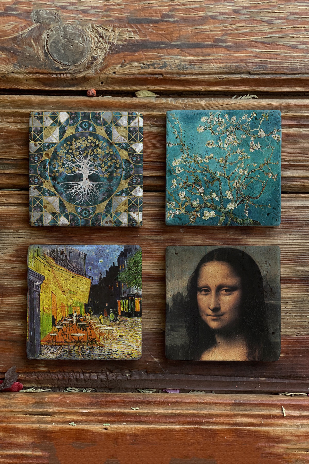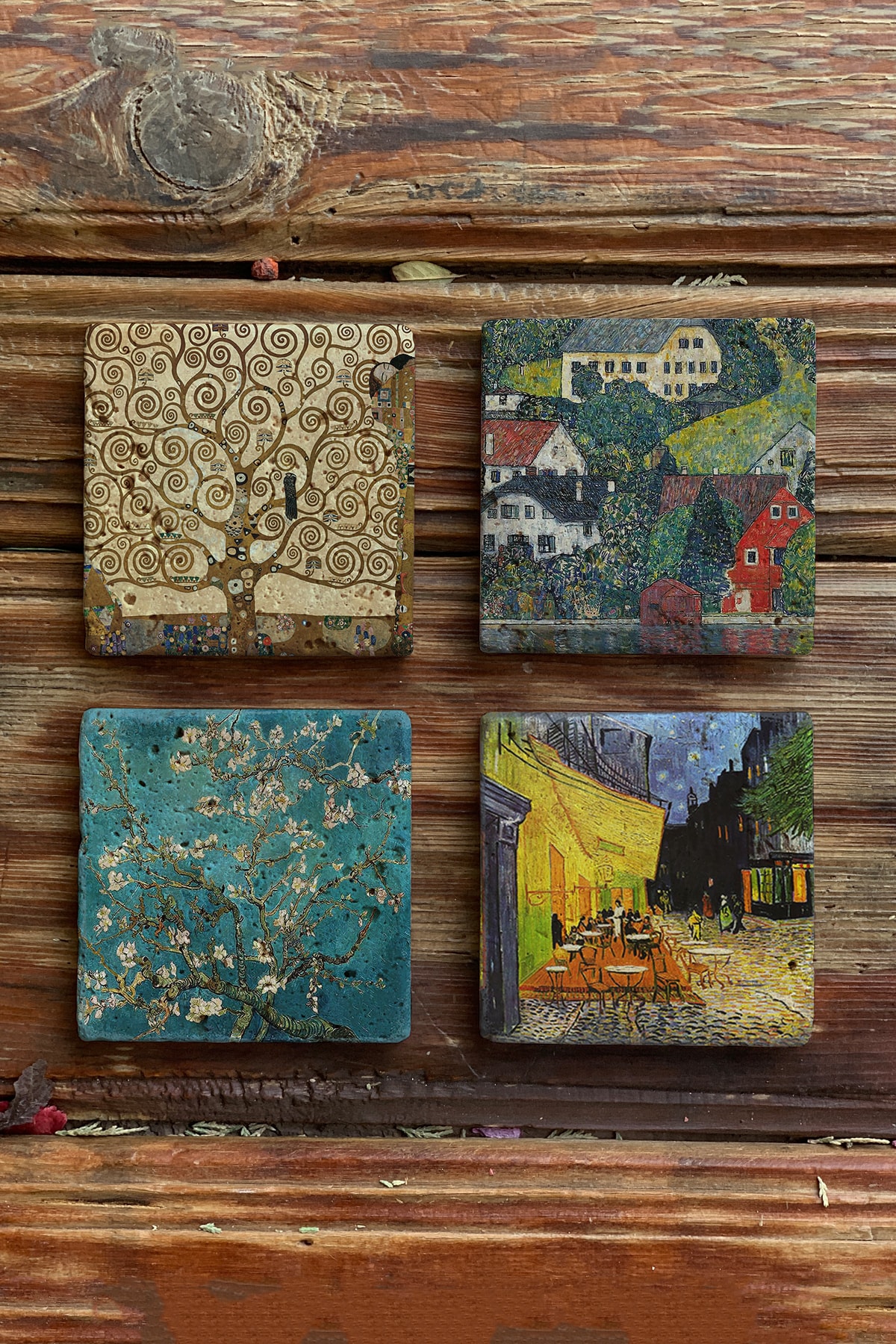 Taş Bardak Altlığı Stone Coasters - 4lü Set Gustav Klimt Tabloları Taş Bardak Altlığı Stone Coasters - 4lü Set Gustav Klimt Tabloları BA560 تک سایز