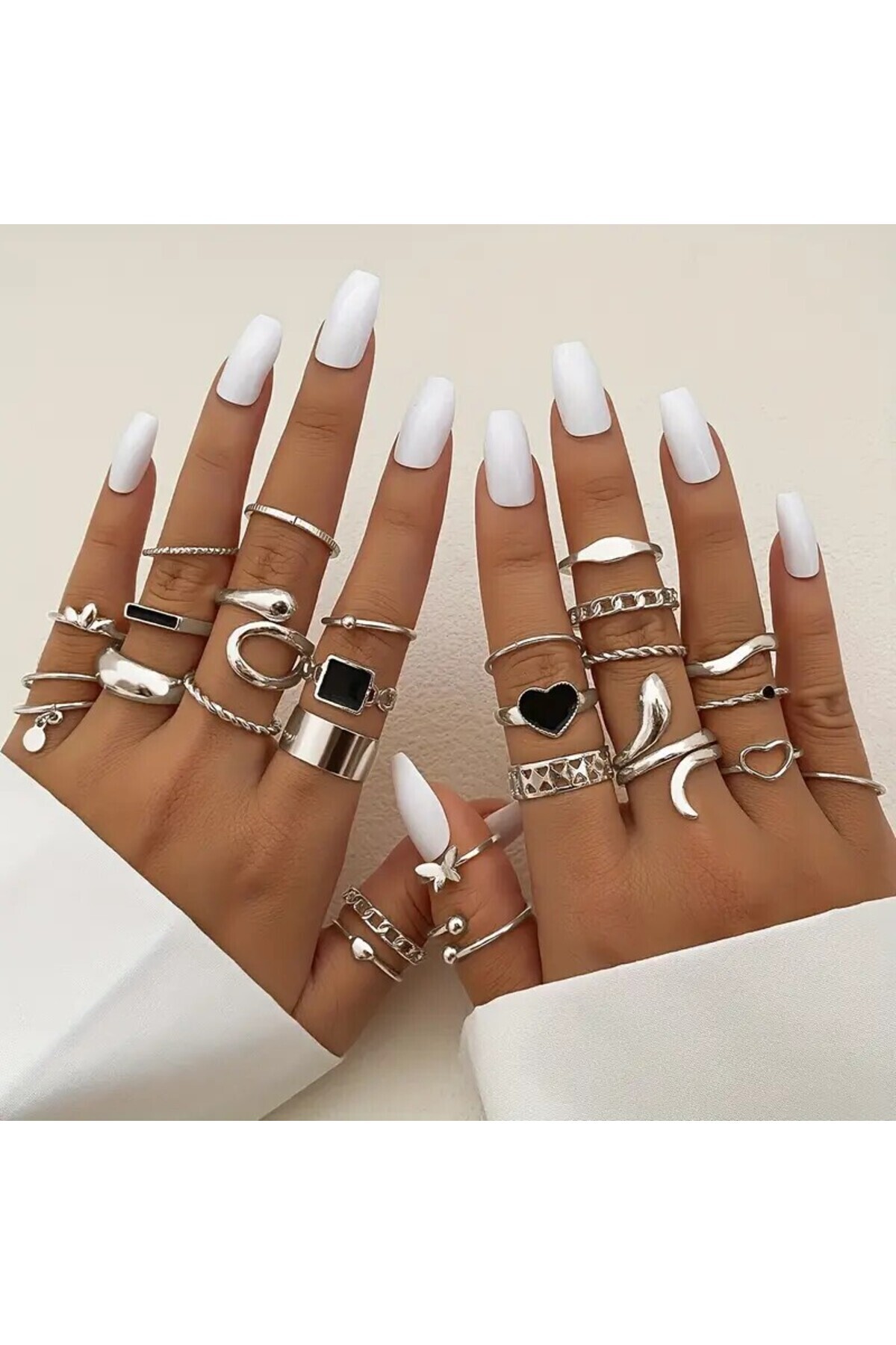 Kadın 9 Adet Ayarlanabilir Yüzük Seti Kadın 9 Adet Ayarlanabilir Yüzük Seti VİN1804SİLVER تک سایز