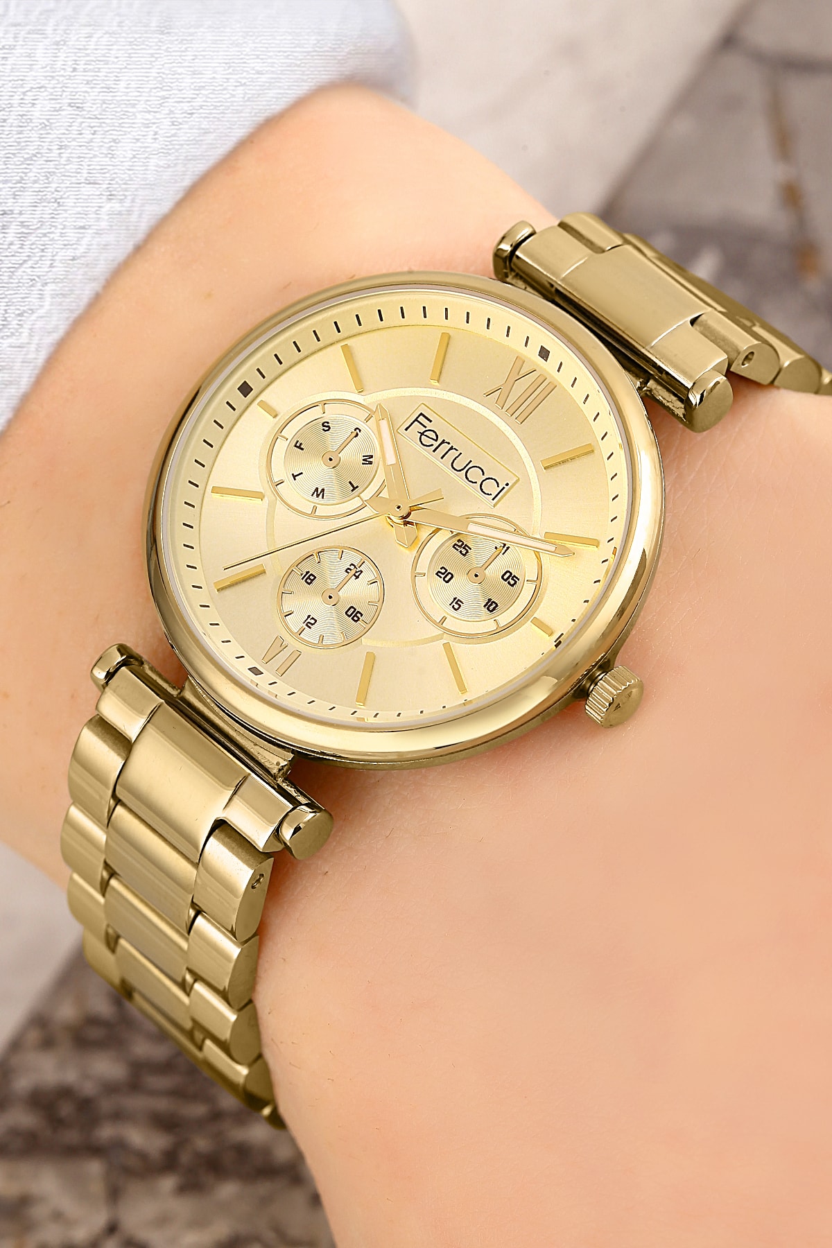 Çelik Kordon Altın Renk 3 Atm Su Geçirmez Takvimli Kadın Kol Saati Çelik Kordon Altın Renk 3 Atm Su Geçirmez Takvimli Kadın Kol Saati TYC00334354620 تک سایز