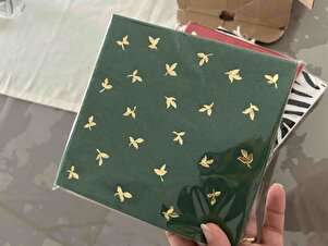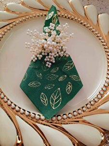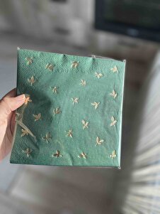 33x33 Cm Altın Varak Yapraklar Desenli 16'lı Koyu Yeşil Renkli Kağıt Peçete 33x33 Cm Altın Varak Yapraklar Desenli 16'lı Koyu Yeşil Renkli Kağıt Peçete SB-3259 تک سایز