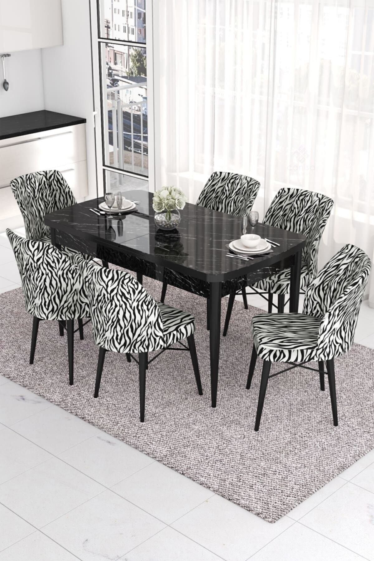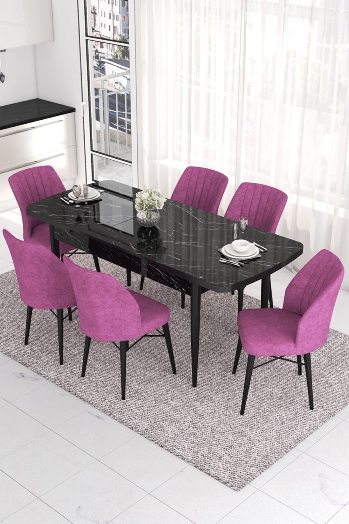 Eva Serisi, 80x132 Açılabilir Mdf Mutfak Masa Takımı, Siyah Mermer Desen Masa ,6 Mor Sandalye Eva Serisi, 80x132 Açılabilir Mdf Mutfak Masa Takımı, Siyah Mermer Desen Masa ,6 Mor Sandalye EVA SİYAH MERMER 6 SANDALYE تک سایز