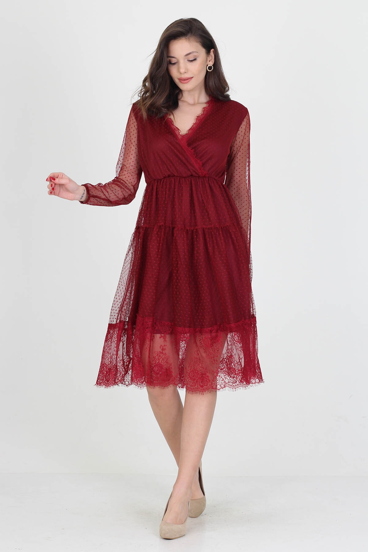 Kadın Kruvaze Yaka Eteği Güpür Detaylı Yeni Sezon Elbise Kadın Kruvaze Yaka Eteği Güpür Detaylı Yeni Sezon Elbise BTQ004 XL