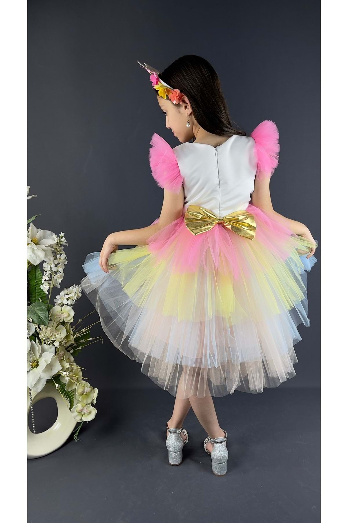 Renkli Pul Payet Tokalı Kız Çocuk Parti Elbisesi BEYAZ Renkli Pul Payet Tokalı Kız Çocuk Parti Elbisesi BEYAZ MNK0305 10 Yaş