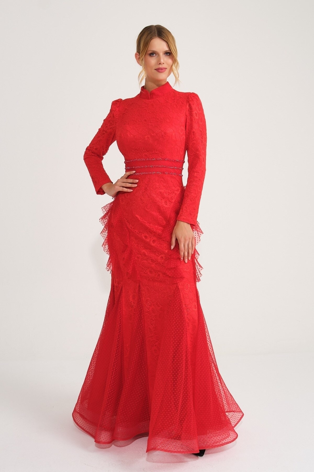Bordo Balon Kol Organize Tül Abiye Bordo Balon Kol Organize Tül Abiye P-0000006890 42
