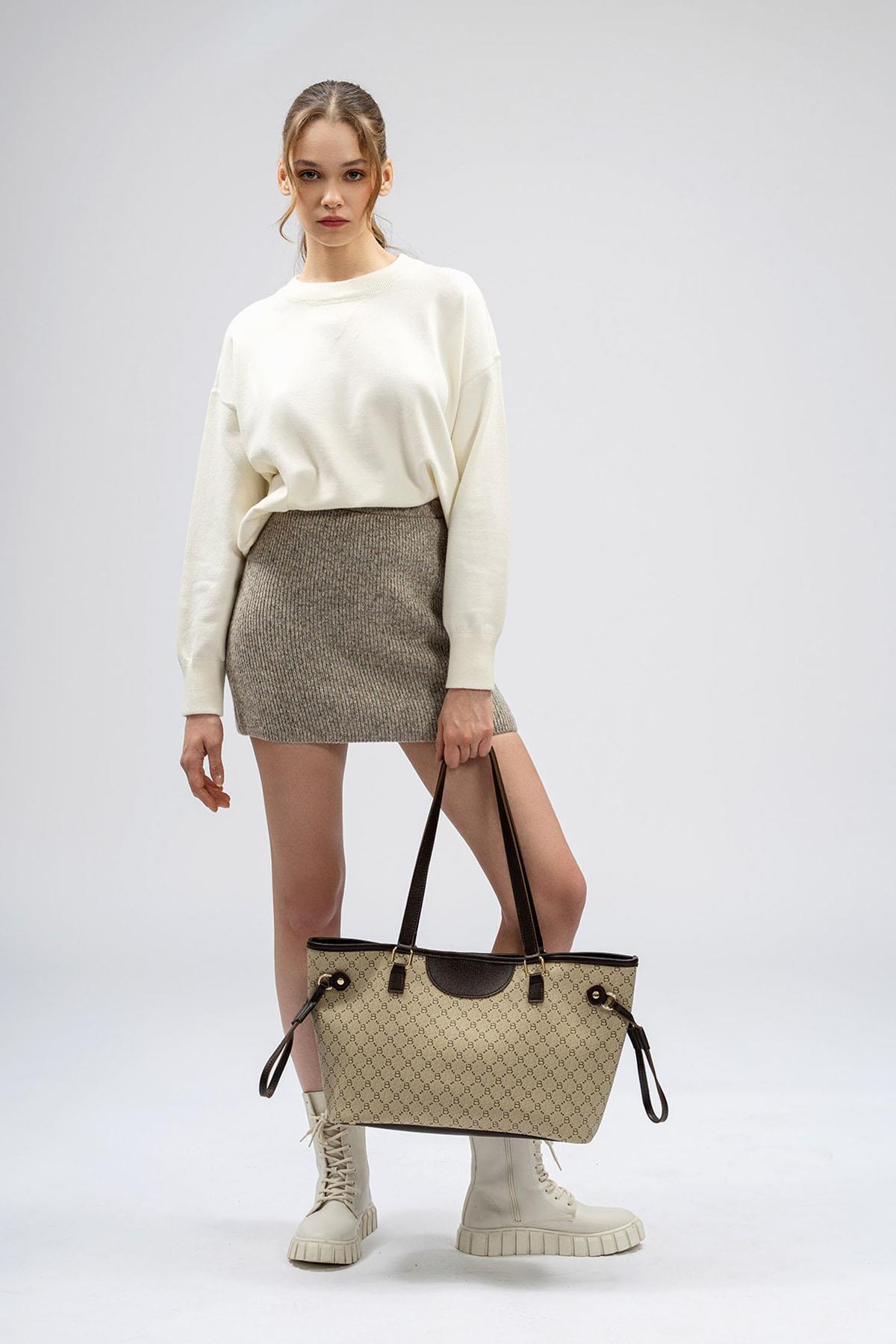 Desenli Kadın Tote El Ve Omuz Çantası Desenli Kadın Tote El Ve Omuz Çantası LKB355 Standart