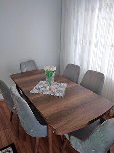 Are Serisi 80x132 Açılabilir Mdf Barok Ahşap Desen Masa Takımı Ve 6 Gri Sandalye Are Serisi 80x132 Açılabilir Mdf Barok Ahşap Desen Masa Takımı Ve 6 Gri Sandalye NAR BAROK VEGA SANDALYE تک سایز