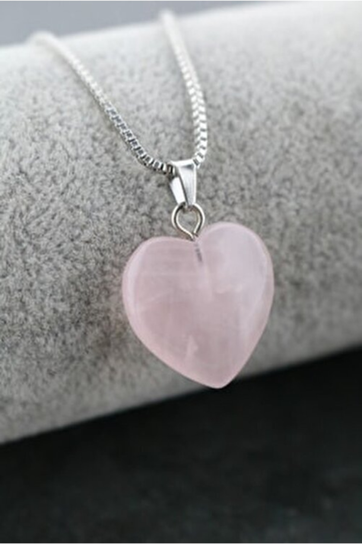 Kalp Kesim Doğal Kristal Kuvars Taşı Kolye Kalp Kesim Doğal Kristal Kuvars Taşı Kolye KLCKL0206 50 cm
