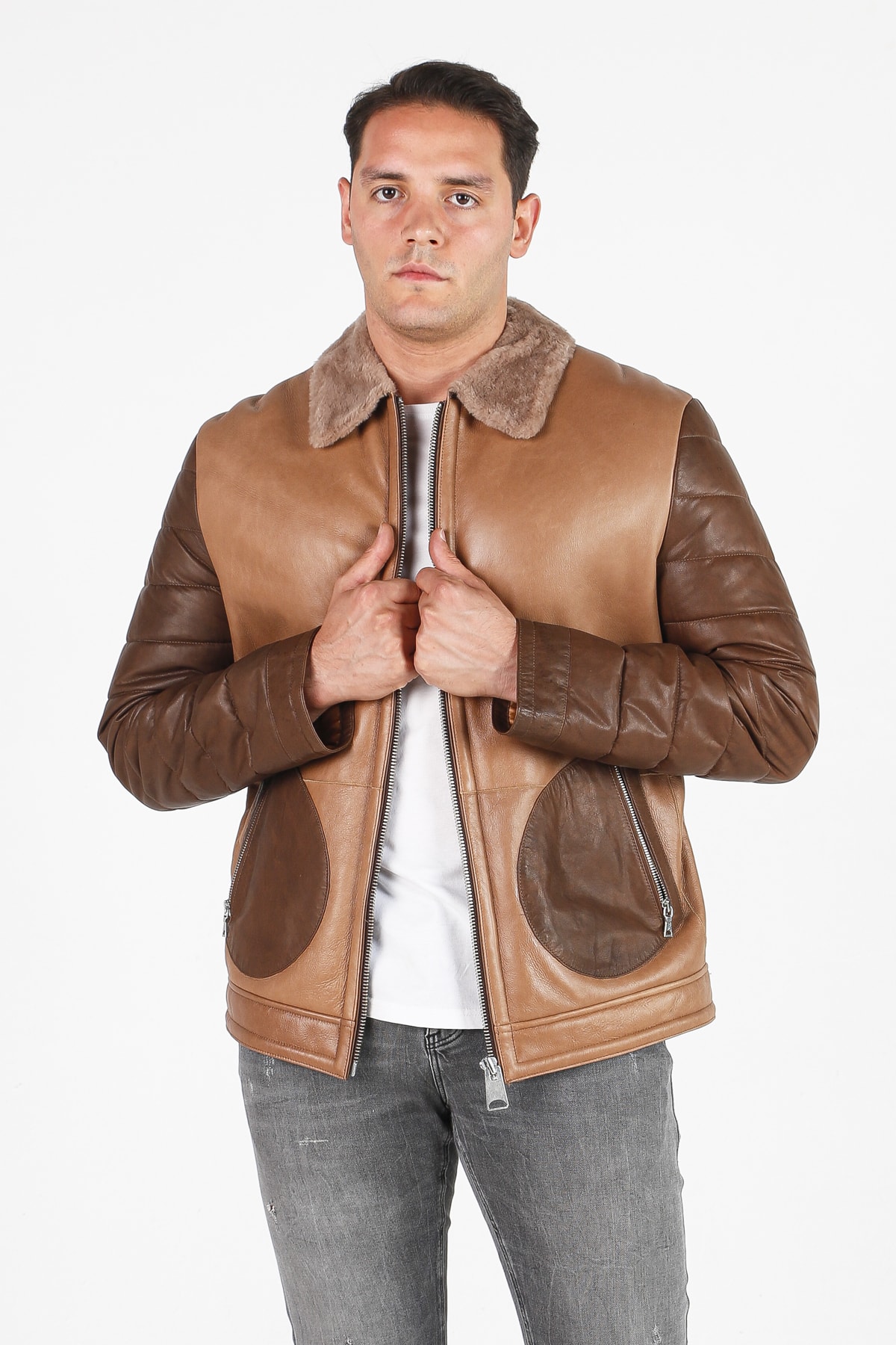 Erkek Hakiki Kuzu Kürk Mont Erkek Hakiki Kuzu Kürk Mont E-222 Lacivert Beyaz Tüy 4XL