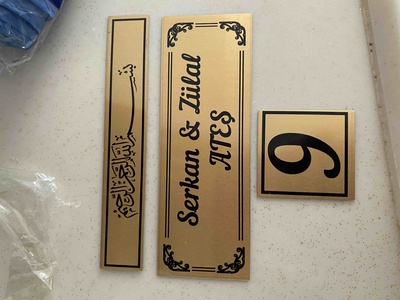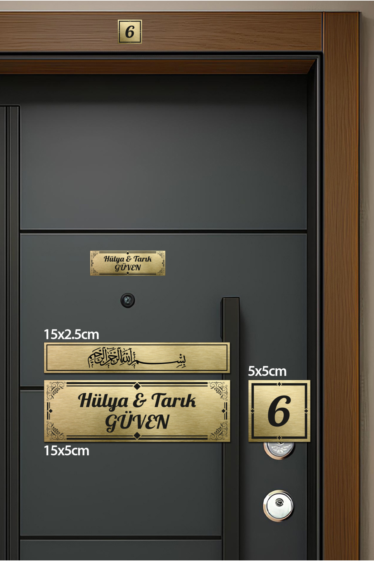 Metal 3'lü Set Kapı Isimliği, Besmele, Kapı Numarası Gold Metal 3'lü Set Kapı Isimliği, Besmele, Kapı Numarası Gold TM-Kİ1 تک سایز