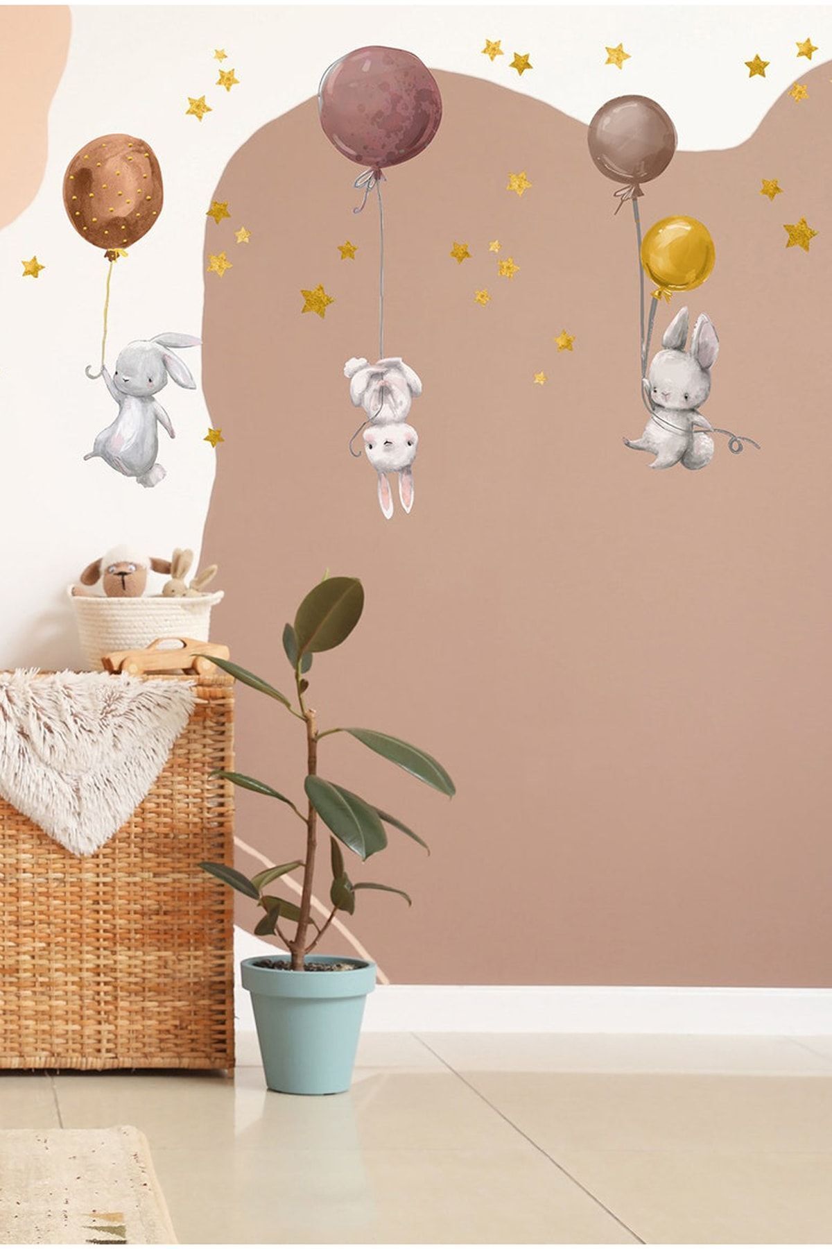 Sevimli Balonlu Tavşanlar Ve Yıldızlar Çocuk Odası Duvar Sticker Sevimli Balonlu Tavşanlar Ve Yıldızlar Çocuk Odası Duvar Sticker KTSY01SGA038 120 x 80