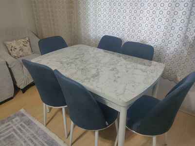 Zen Serisi 80x132 Mdf Açılabilir Beyaz Mermer Desen Masa Takımı Ve 6 Füme Sandalye Zen Serisi 80x132 Mdf Açılabilir Beyaz Mermer Desen Masa Takımı Ve 6 Füme Sandalye Zen Beyaz Mermer Desen Dexa Sandalye تک سایز