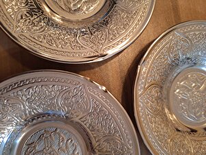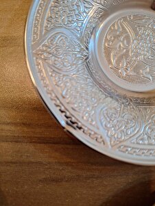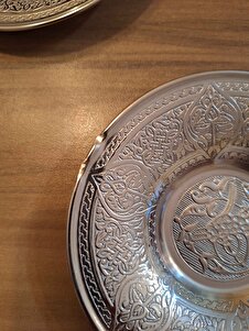 Gaziantep Bakır Çay Tabağı Osmanlı Tuğra Işlemeli 6'lı Gaziantep Bakır Çay Tabağı Osmanlı Tuğra Işlemeli 6'lı DMT-19122 تک سایز