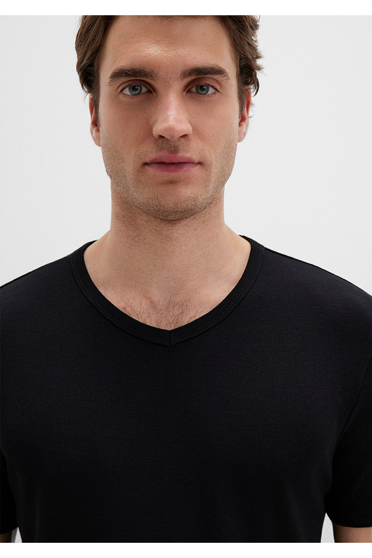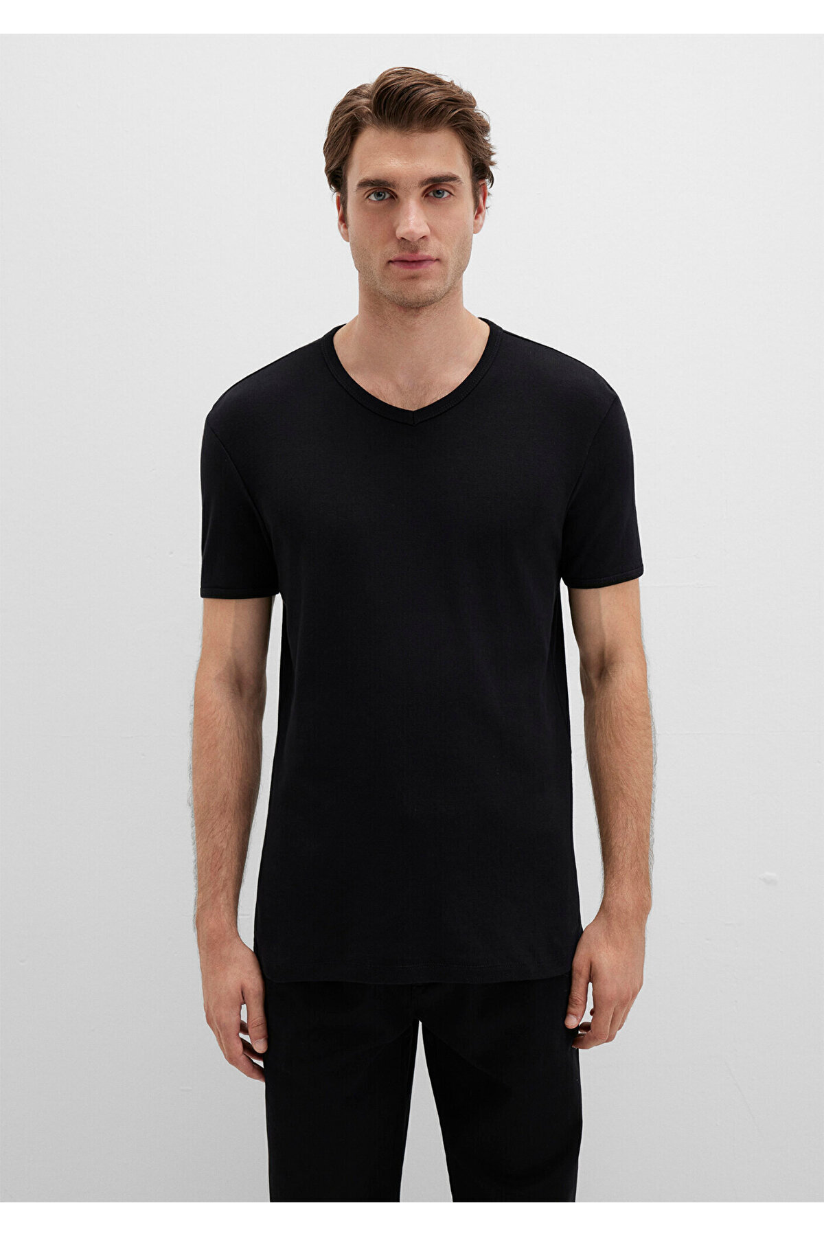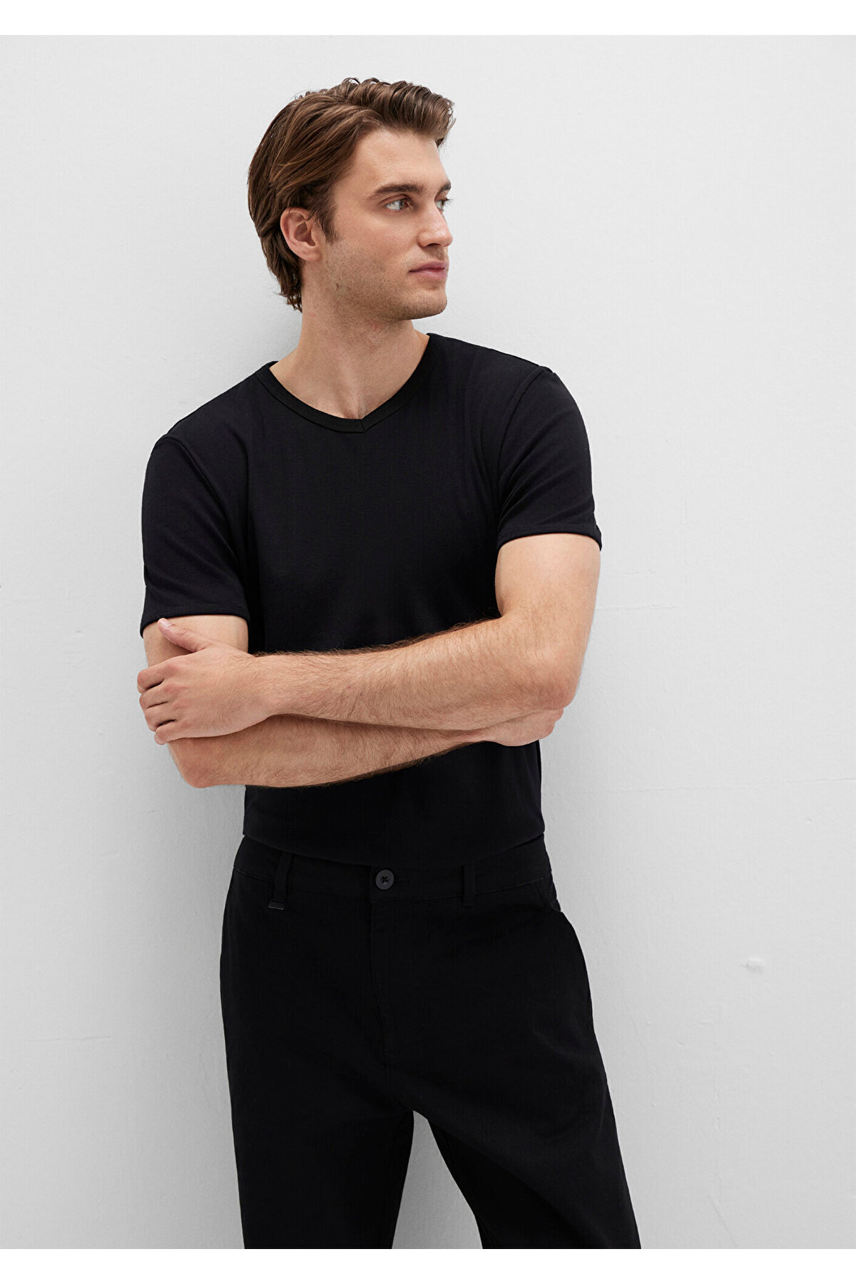 Ribana Detaylı V Yaka Siyah Tişört Fitted / Vücuda Oturan Kesim 063748-900 Ribana Detaylı V Yaka Siyah Tişört Fitted / Vücuda Oturan Kesim 063748-900 3XL