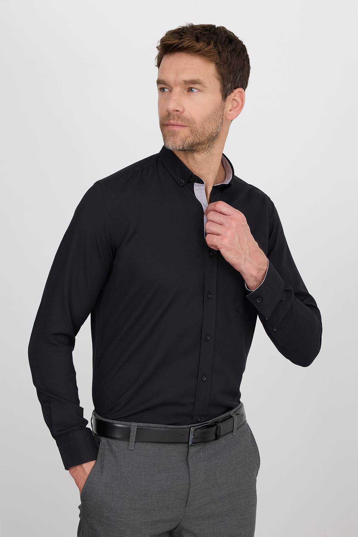 Erkek Regular Fit Klasik Kesim Pamuklu Oxford Doku Tek Cepli Siyah Düğmeli Yaka Gömlek Erkek Regular Fit Klasik Kesim Pamuklu Oxford Doku Tek Cepli Siyah Düğmeli Yaka Gömlek KL220008-242 2XL