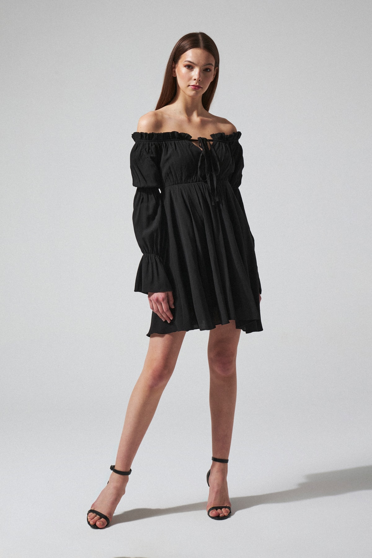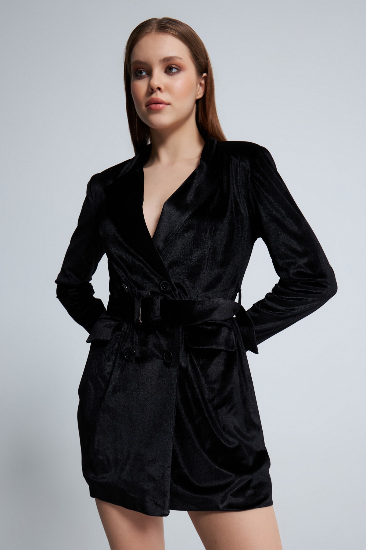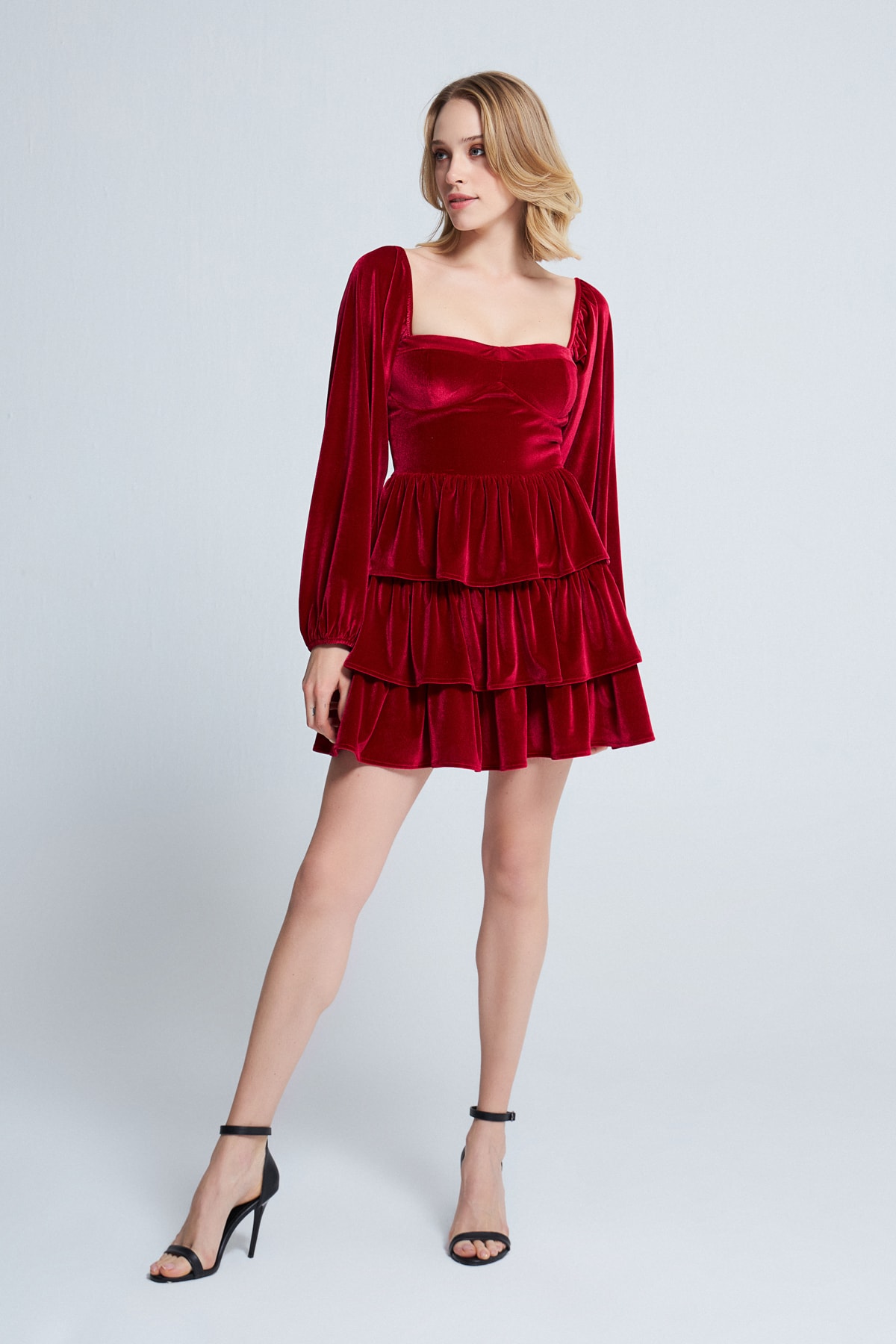 Uzun Kollu Kat Kat Kadife Elbise Siyah Uzun Kollu Kat Kat Kadife Elbise Siyah BKH-00201 46