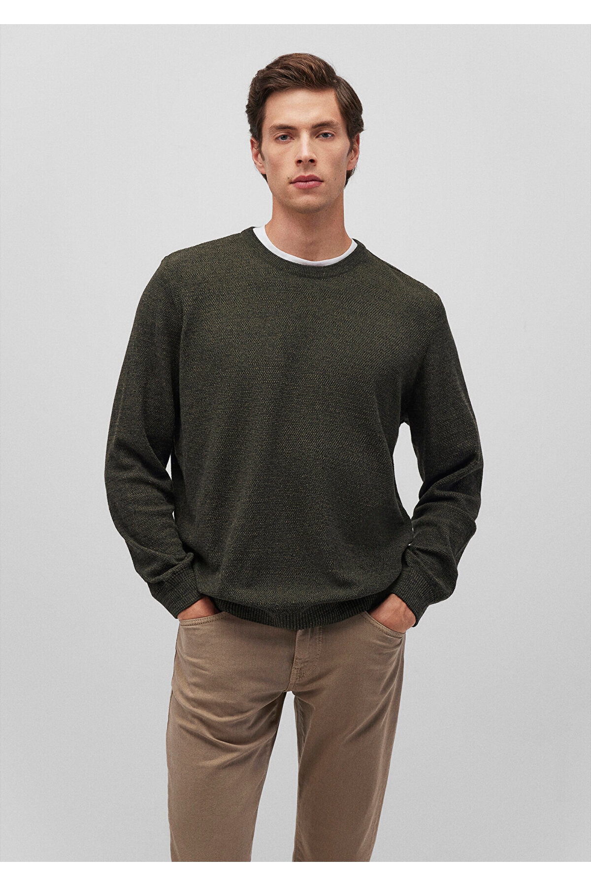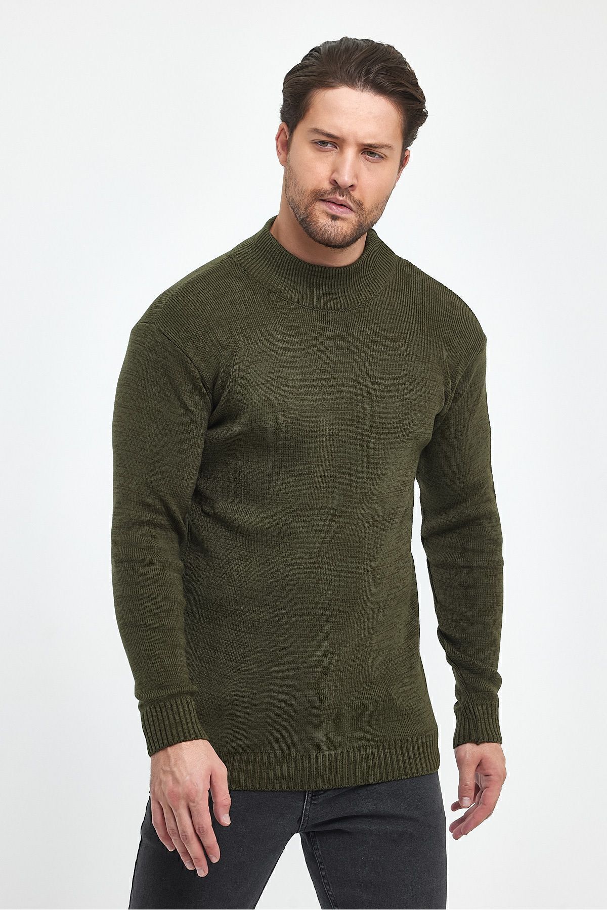 Helsinki Erkek Bisiklet Yaka Haki Düz Triko Kazak Helsinki Erkek Bisiklet Yaka Haki Düz Triko Kazak YLD-2029 2XL