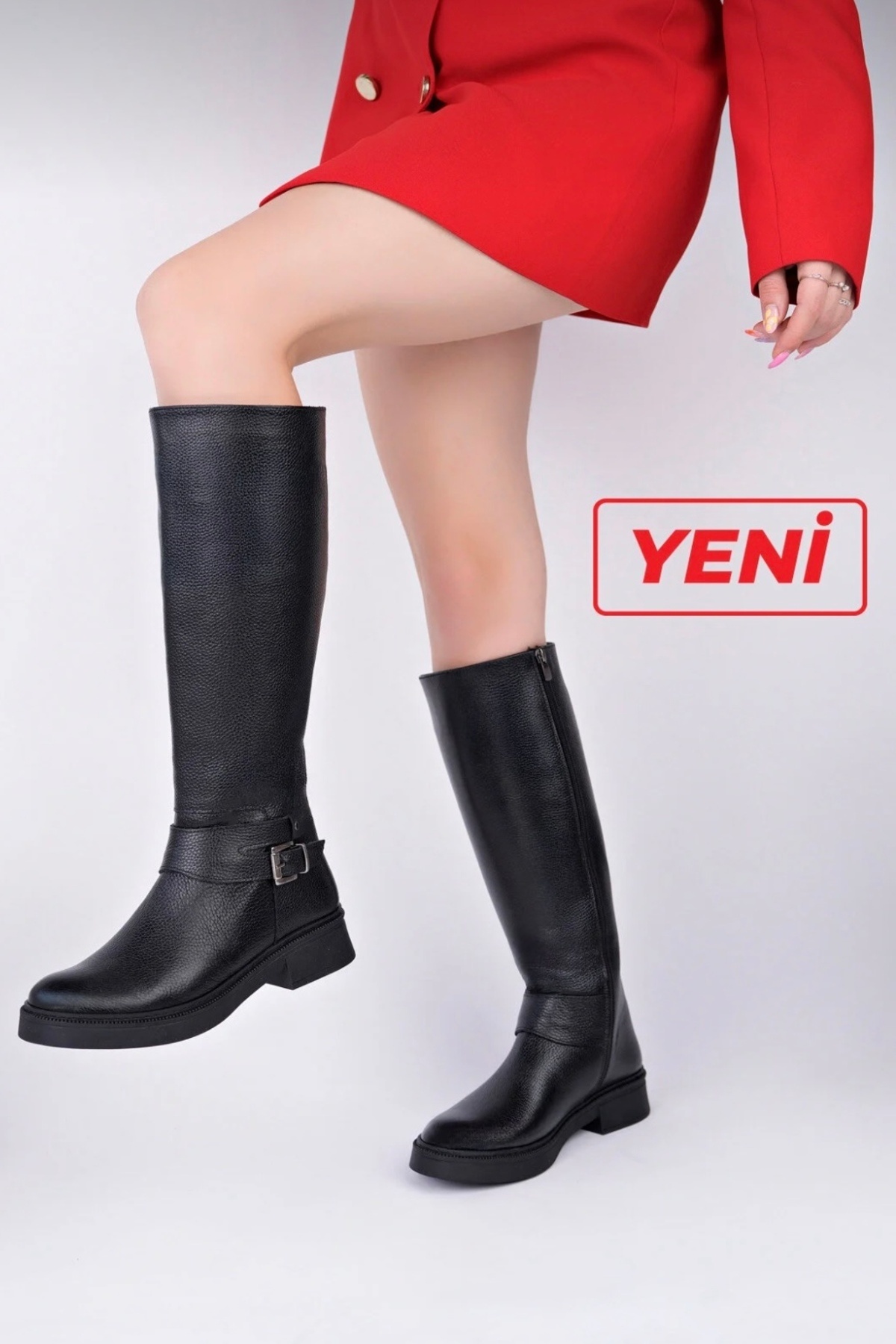 Hakiki Deri Arkası Streç Çizme Hakiki Deri Arkası Streç Çizme 40