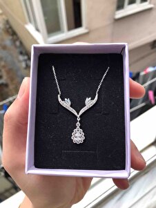925 Ayar Gümüş Beyaz Damla Taşlı Tasarım Kolye Kadın Gümüş Kolye 925 Ayar Gümüş Beyaz Damla Taşlı Tasarım Kolye Kadın Gümüş Kolye Essakly321 تک سایز