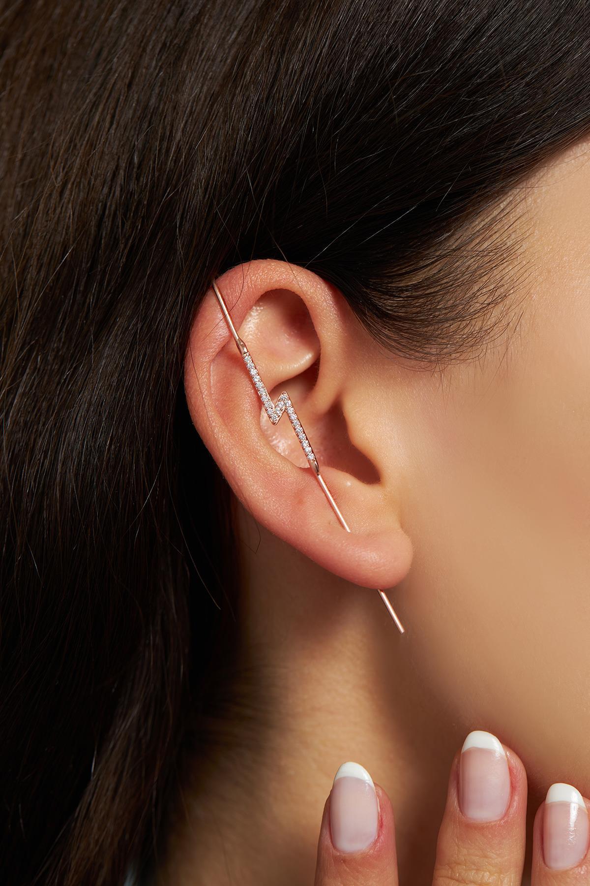 Kadın Tekli Renkli Şimşek Yıldırım Baston Küpe - Rose KP-0251 Kadın Tekli Renkli Şimşek Yıldırım Baston Küpe - Rose KP-0251 تک سایز