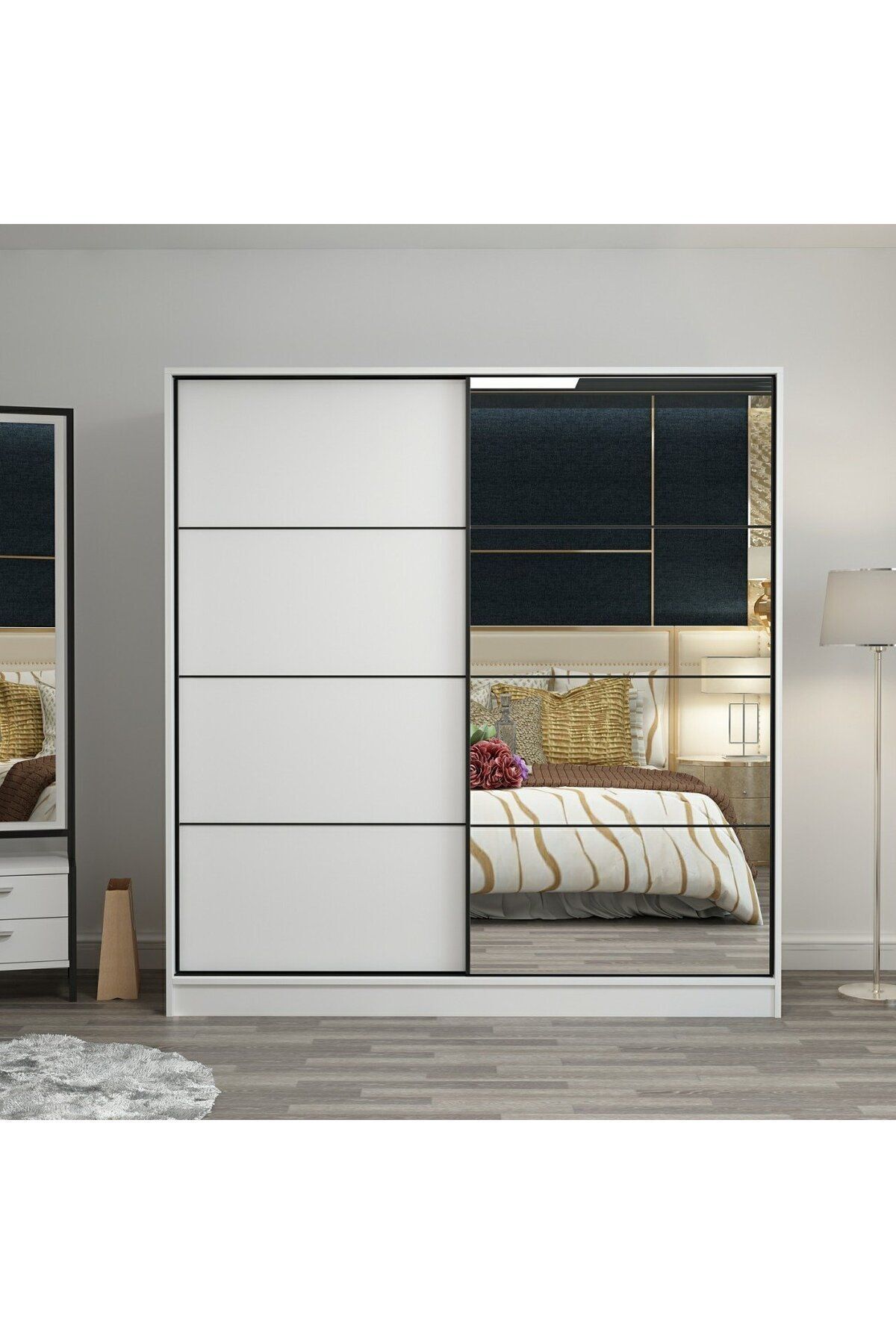 Geniş Raf Askılı Aynalı Sürgülü Gardrop 200x60x210 Cm Geniş Raf Askılı Aynalı Sürgülü Gardrop 200x60x210 Cm 7329DLP200 180 - 195 cm