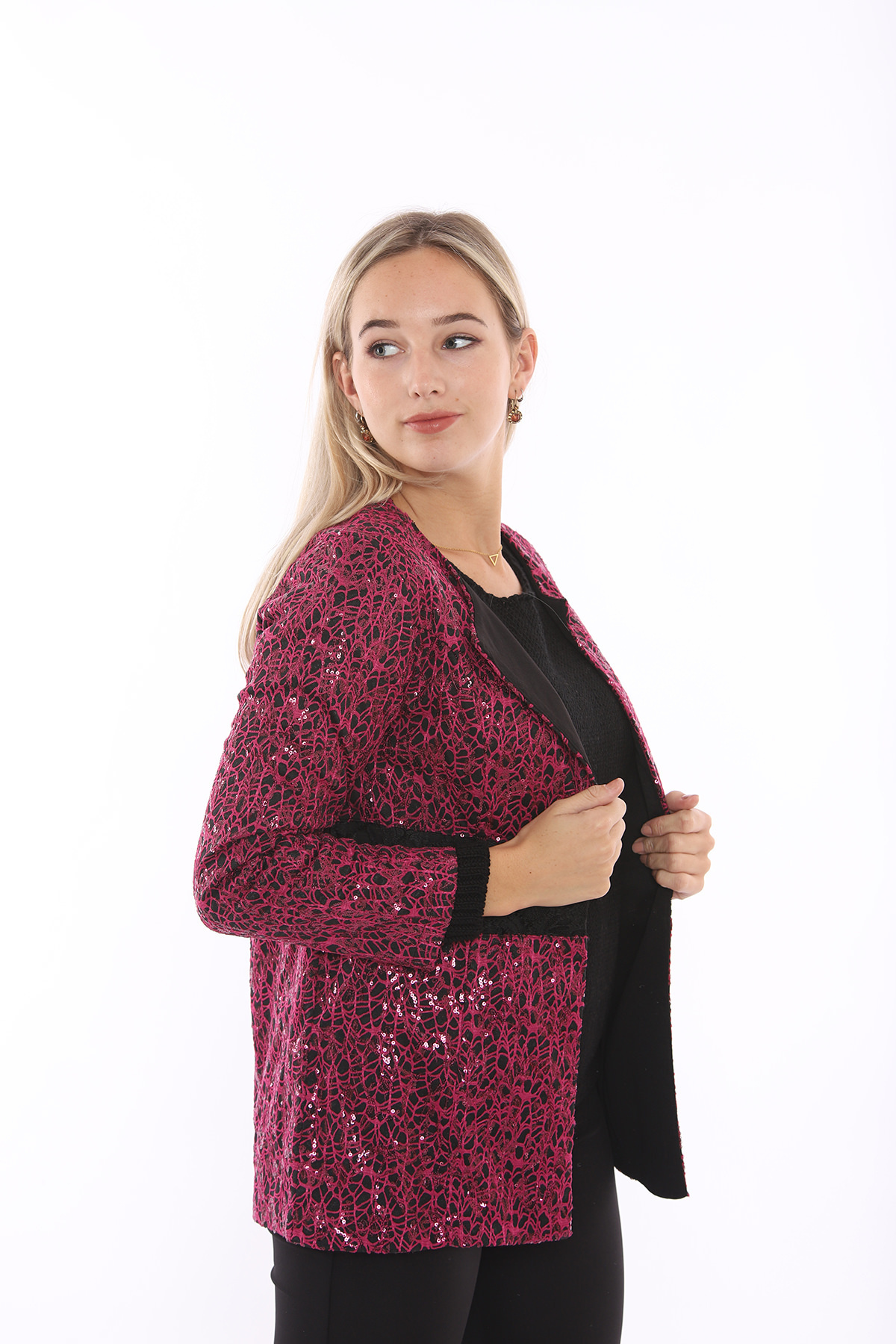 Beli Dantel Garnılı Icı Astarlı Fıle Payetlı Ceket | Ckt31119 Fuşya Beli Dantel Garnılı Icı Astarlı Fıle Payetlı Ceket | Ckt31119 Fuşya 42