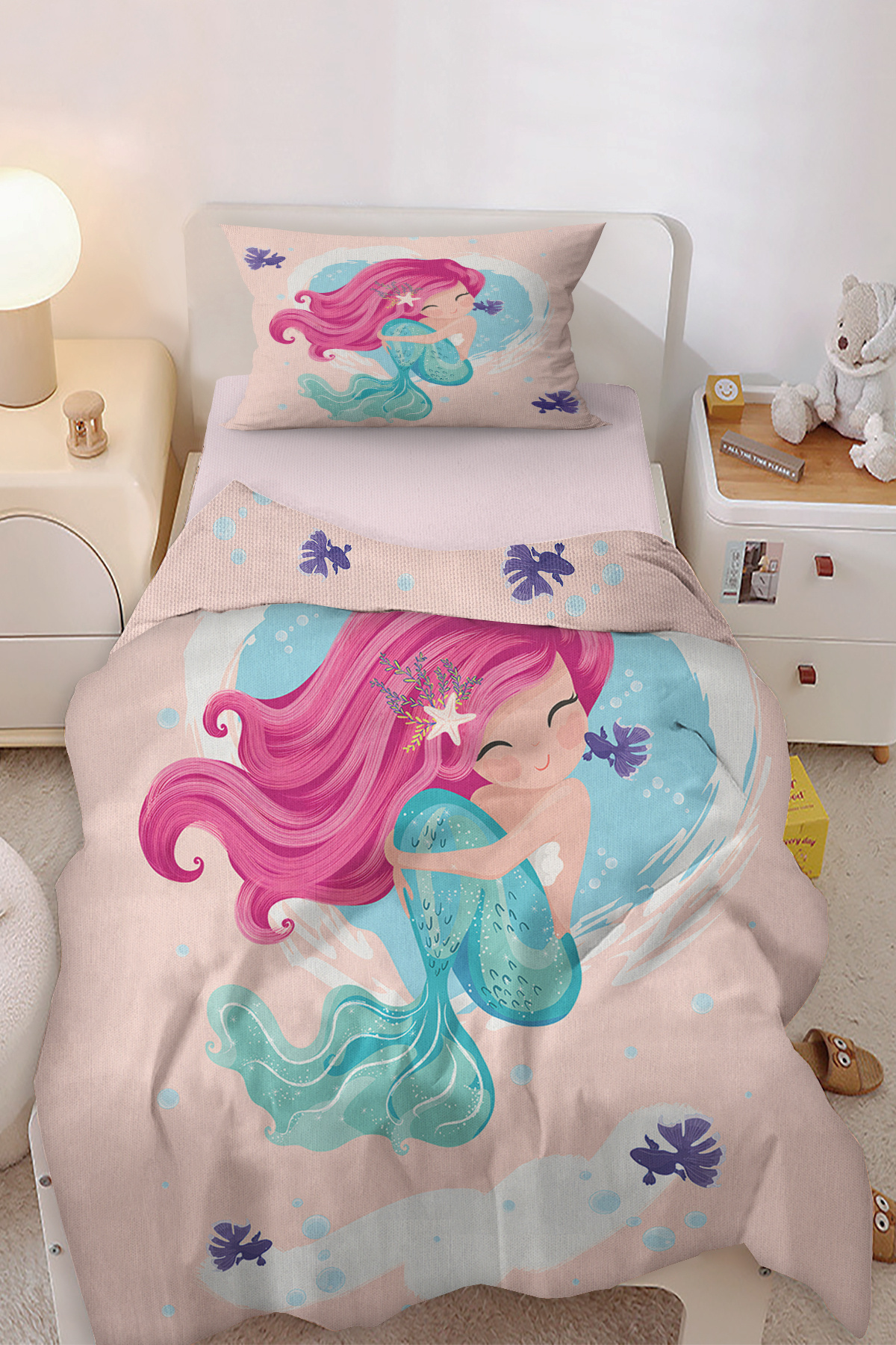 Sevimli Deniz Kızı Desenli Tek Kişilik Bebek Çocuk Nevresim Takımı Sevimli Deniz Kızı Desenli Tek Kişilik Bebek Çocuk Nevresim Takımı BD037-N تک سایز