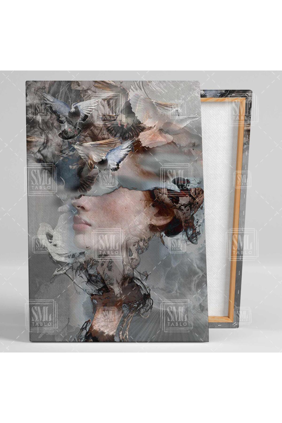 Güvercin Kafalı Kadın Ilüstrasyon Dekor Woman Uçan Kuşlar Dikey Kanvas Tablo Güvercin Kafalı Kadın Ilüstrasyon Dekor Woman Uçan Kuşlar Dikey Kanvas Tablo T1011001 100 x 150