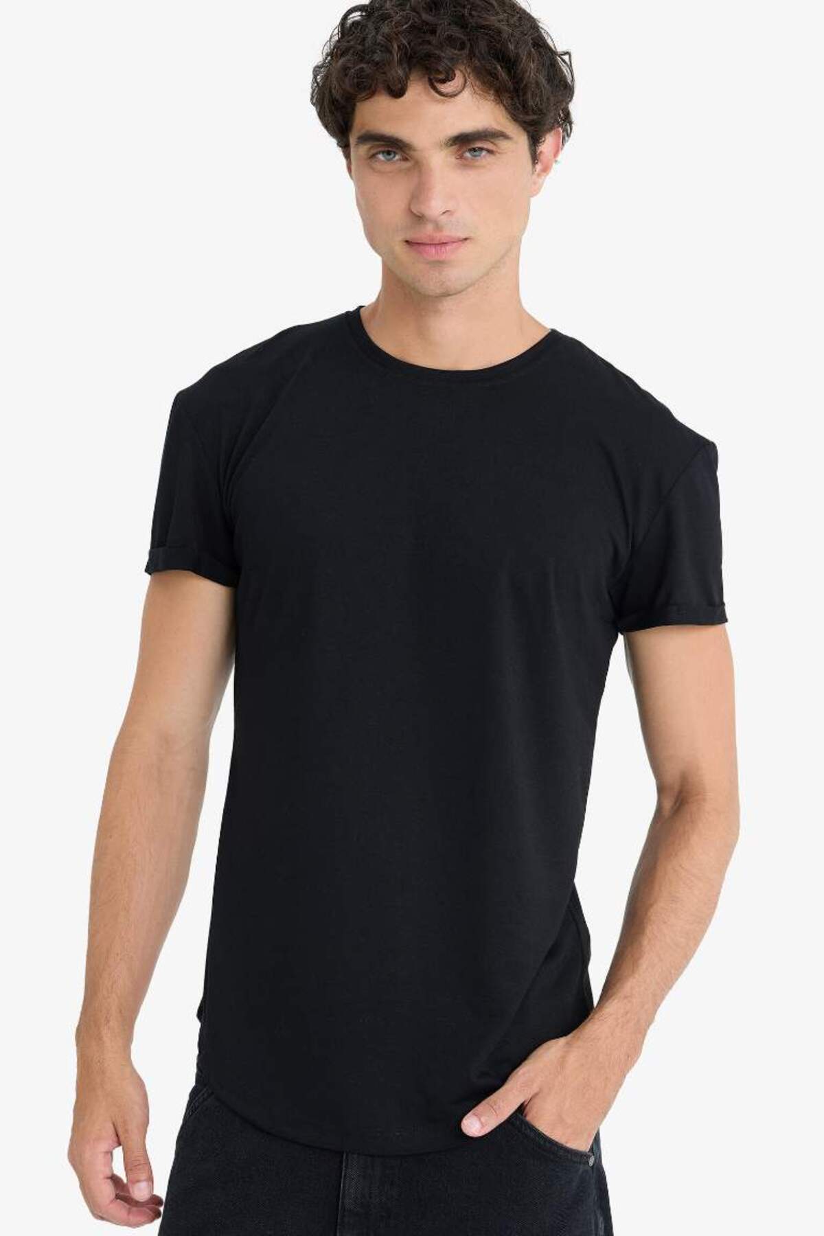 Basic Erkek Bisiklet Yaka Long Fit Eteği Biyeli T-shirt Basic Erkek Bisiklet Yaka Long Fit Eteği Biyeli T-shirt PR1537 XL