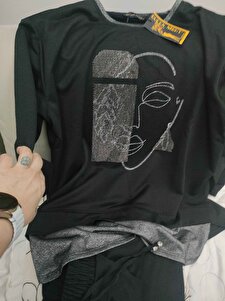 Yuvarlak Yaka Sim Detaylı Taş Işlemeli Beli Bağcıklı Cepli Büyük Beden Eşofman Takım Yuvarlak Yaka Sim Detaylı Taş Işlemeli Beli Bağcıklı Cepli Büyük Beden Eşofman Takım KHE-00083-1_Siyah 46/48