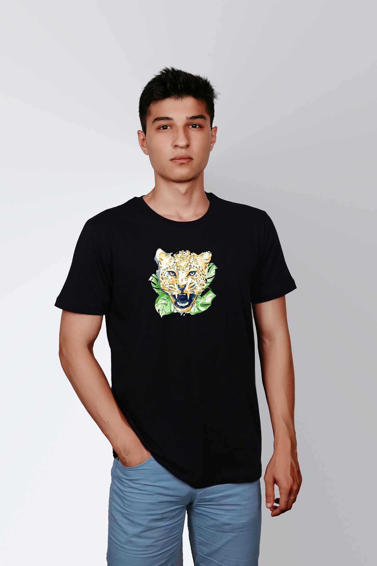 Erkek Oversize T-shirt Leopar Sırt Baskı Siyah Erkek Oversize T-shirt Leopar Sırt Baskı Siyah leopar-DP 2XL