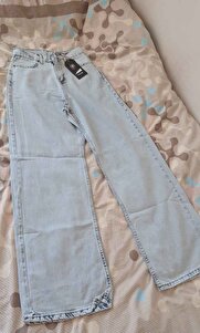 Lena Likralı Kadın Buz Mavi Süper Yüksek Bel Bol Paça Denim Kot Palazzo Pantolon Lena Likralı Kadın Buz Mavi Süper Yüksek Bel Bol Paça Denim Kot Palazzo Pantolon LVK-001040A 33