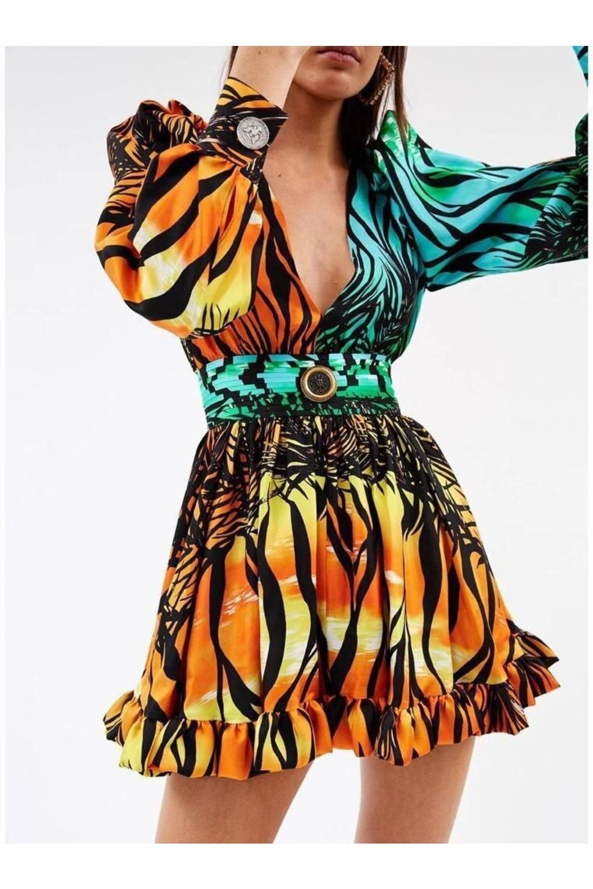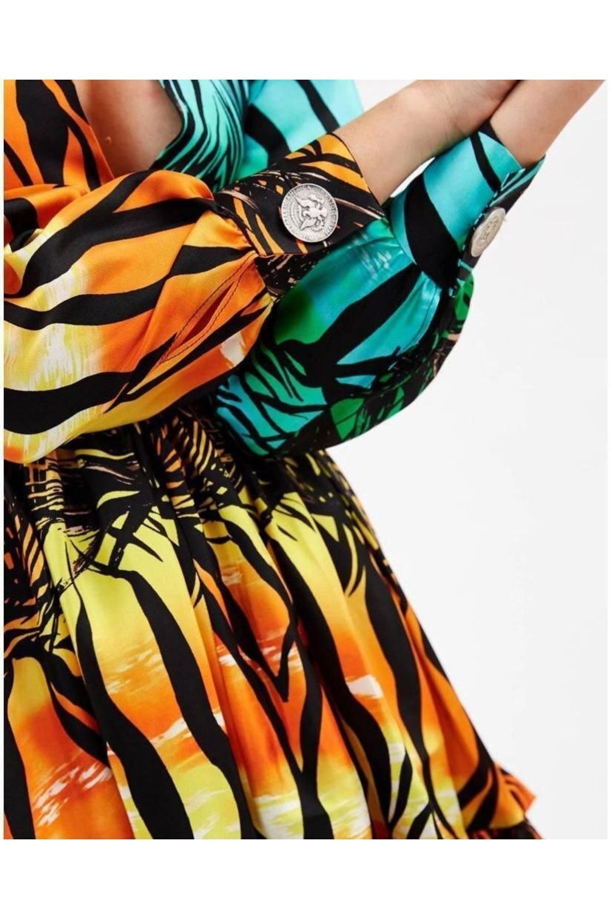 Atlas Kumaş Tasarım Elbise Yeşil Atlas Kumaş Tasarım Elbise Yeşil MSN073 XL