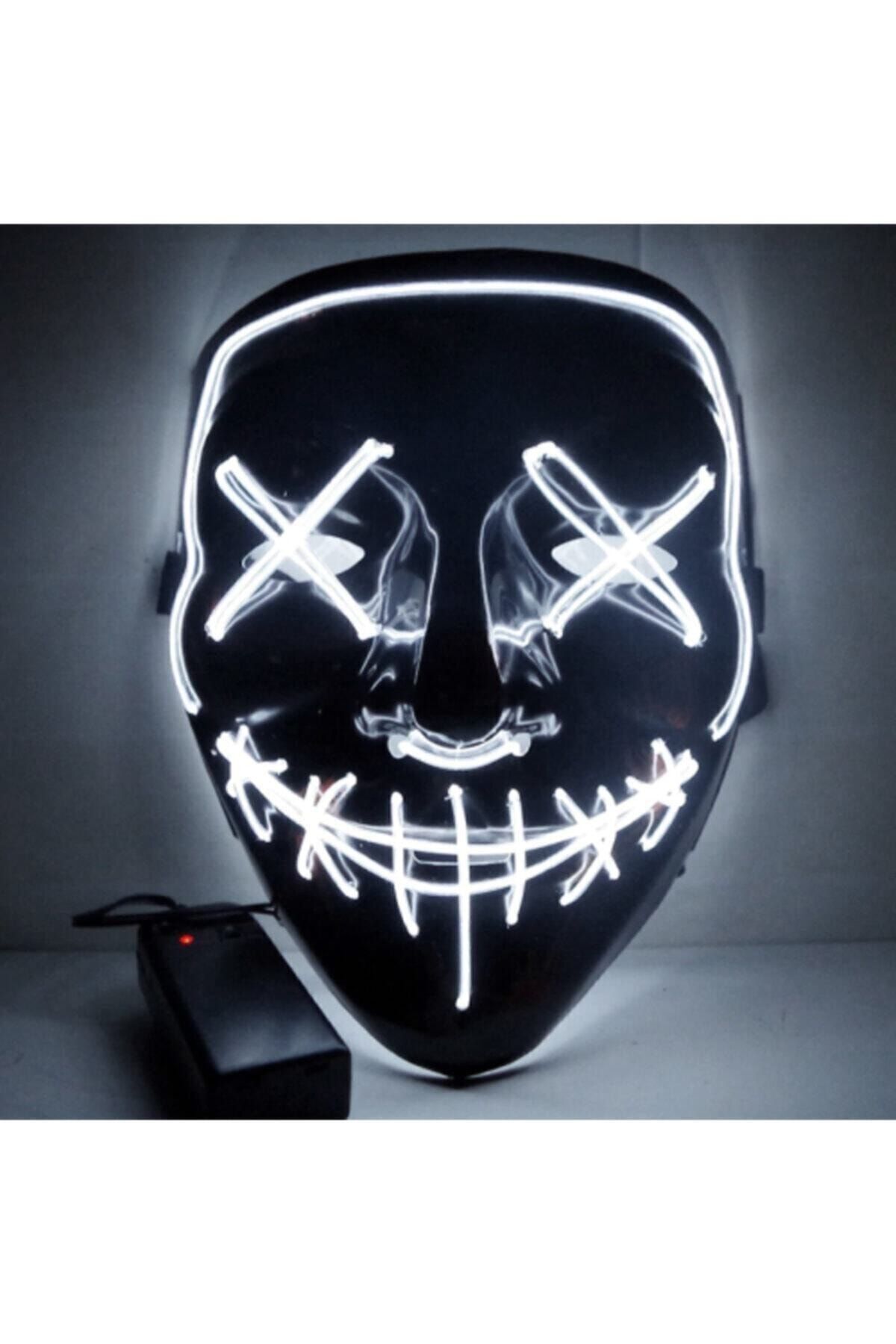 Hallowen Led Işıklı Neon Maske | Cadılar Bayramı Parti Eğlence Maskesi Beyaz Hallowen Led Işıklı Neon Maske | Cadılar Bayramı Parti Eğlence Maskesi Beyaz Led Maske تک سایز