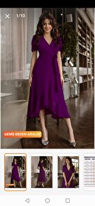 Mor Valonlu Kuşaklı Midi Kısa Kol Elbise Mor Valonlu Kuşaklı Midi Kısa Kol Elbise 108 5XL