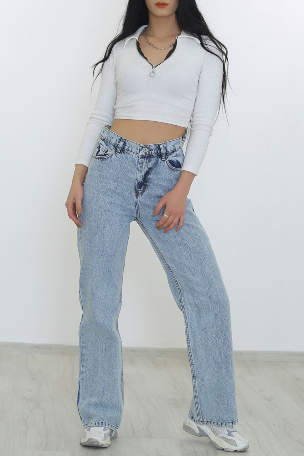 Kadın Mavi Kar Yıkama Süper Yüksek Bel Likralı Bol Paça Denim Kot Pantolon Kadın Mavi Kar Yıkama Süper Yüksek Bel Likralı Bol Paça Denim Kot Pantolon MARY2515 44