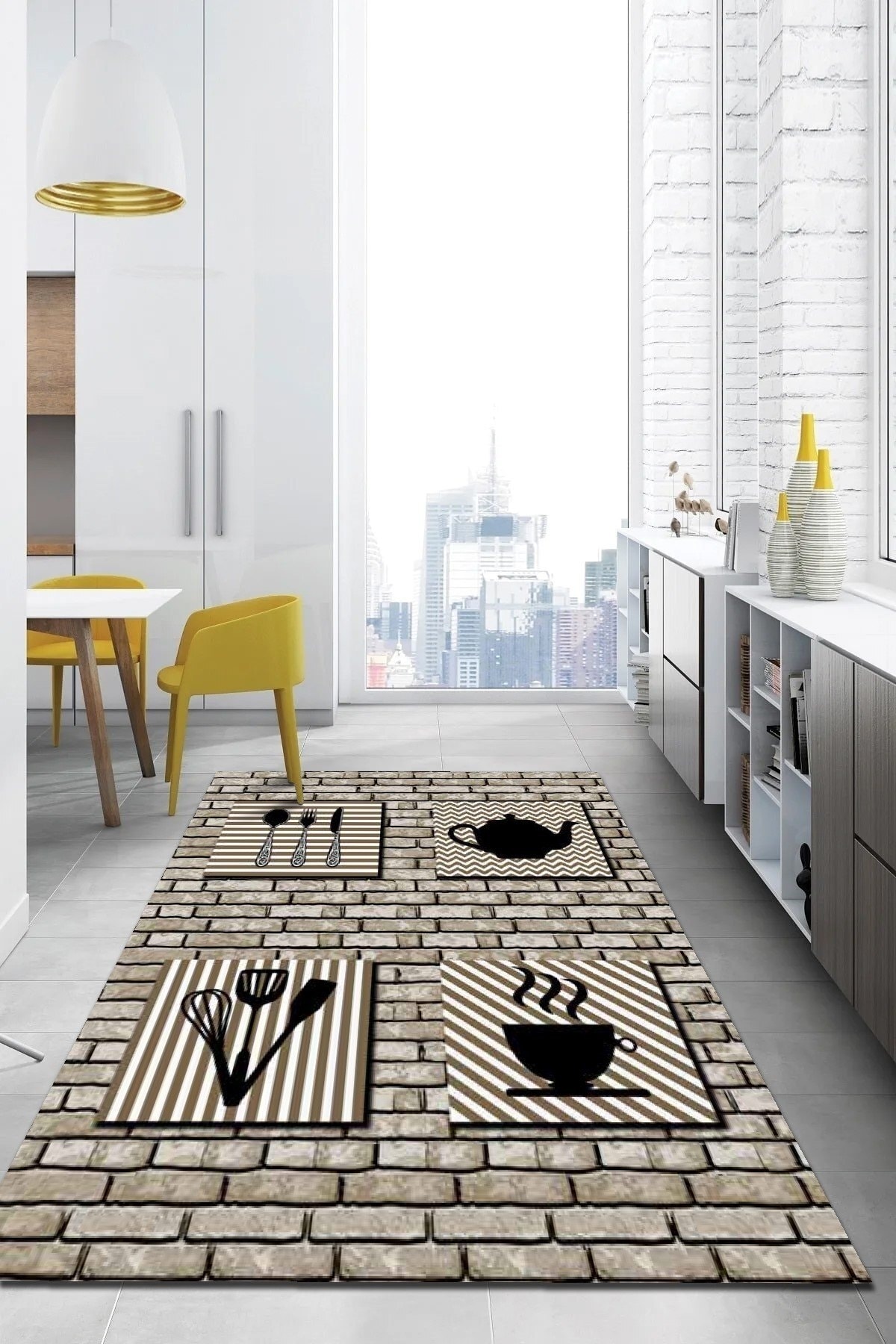 Eko Punto Kaymaz Dot Tabanlı Yıkanabilir Antibakteriyel Dijital Baskı Mutfak Halısı Eko Punto Kaymaz Dot Tabanlı Yıkanabilir Antibakteriyel Dijital Baskı Mutfak Halısı MK--9019A--EKOPNT 160 x 230