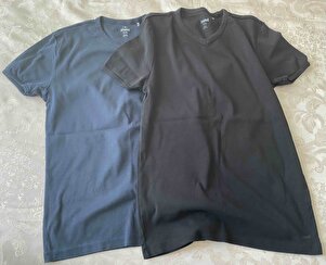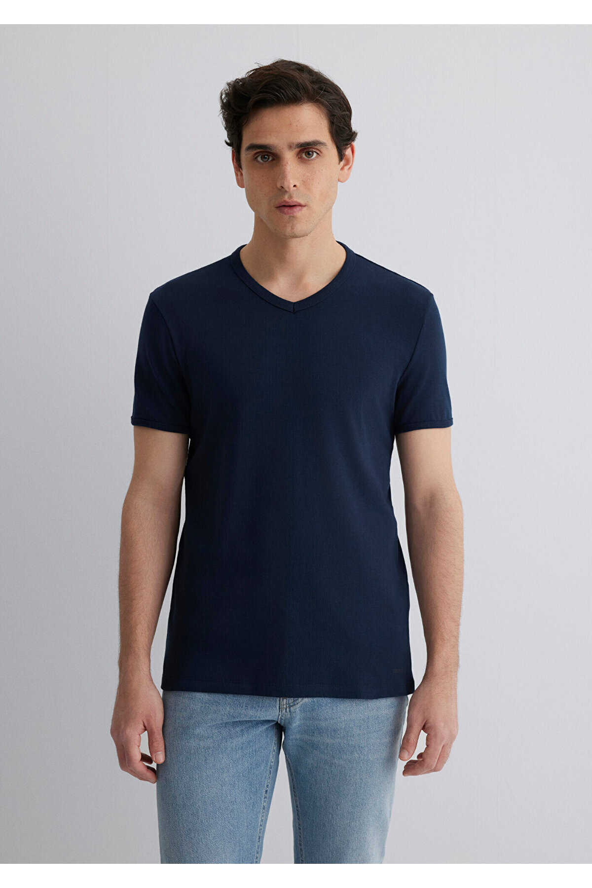 Ribana Detaylı V Yaka Lacivert Tişört Fitted / Vücuda Oturan Kesim 063748-17588 Ribana Detaylı V Yaka Lacivert Tişört Fitted / Vücuda Oturan Kesim 063748-17588 XXL-L