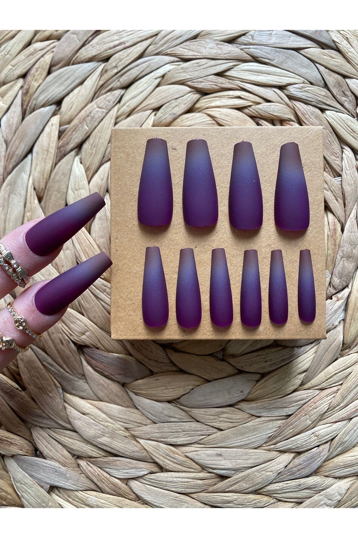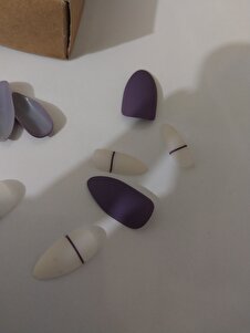12 Adet Mor Beyaz Mat Badem Takma Tırnak 12 Adet Mor Beyaz Mat Badem Takma Tırnak CN 025 تک سایز