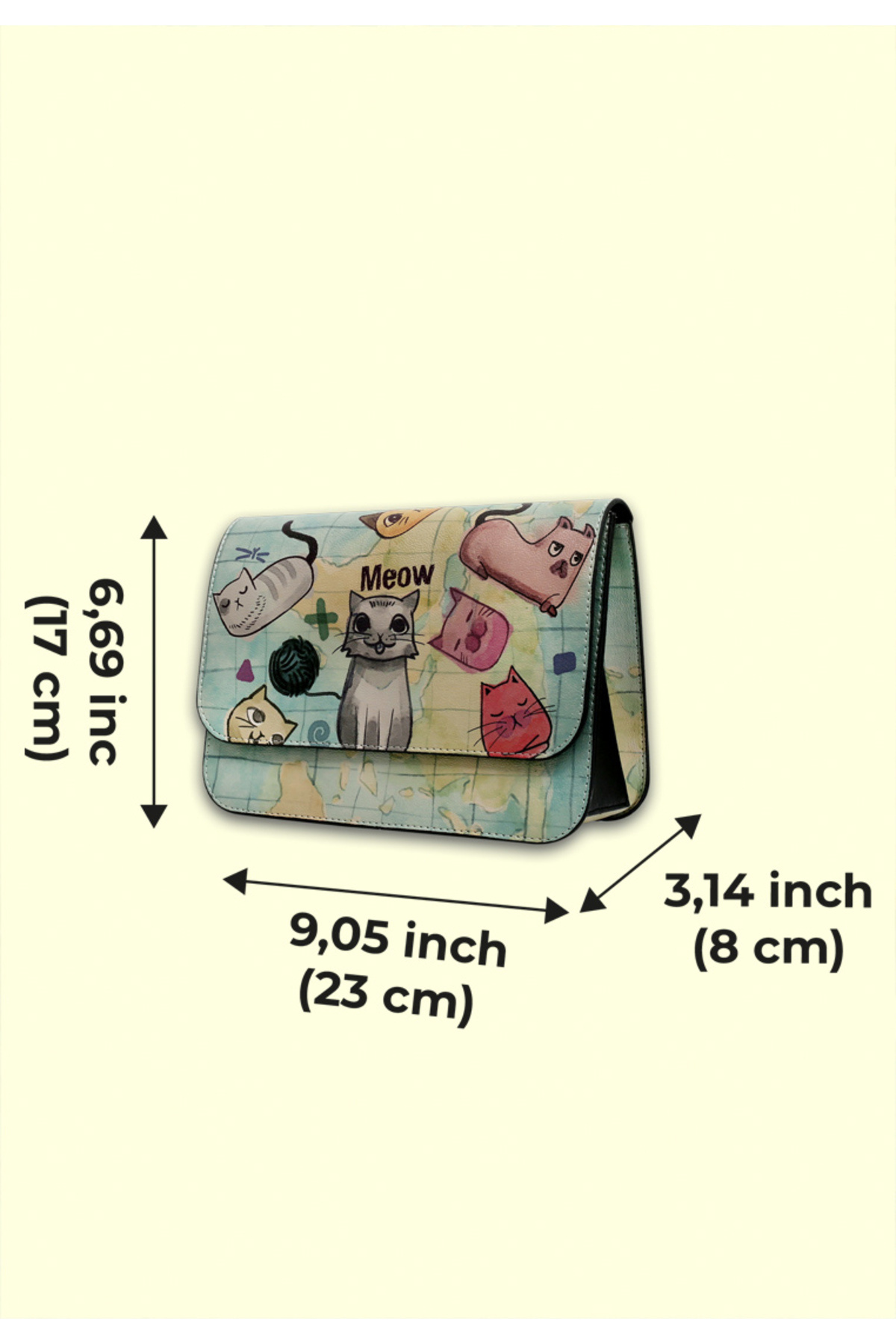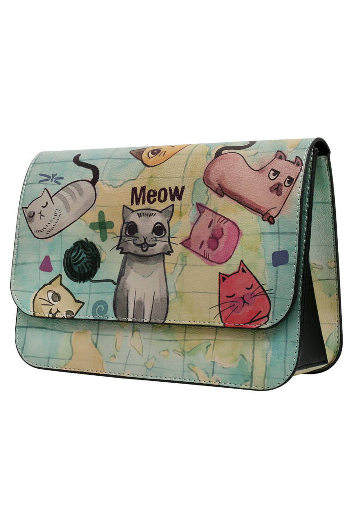 Kadın Vegan Deri Yeşil El Çantası - Cats Of The World Tasarım Kadın Vegan Deri Yeşil El Çantası - Cats Of The World Tasarım dgb022-y-gen015 تک سایز