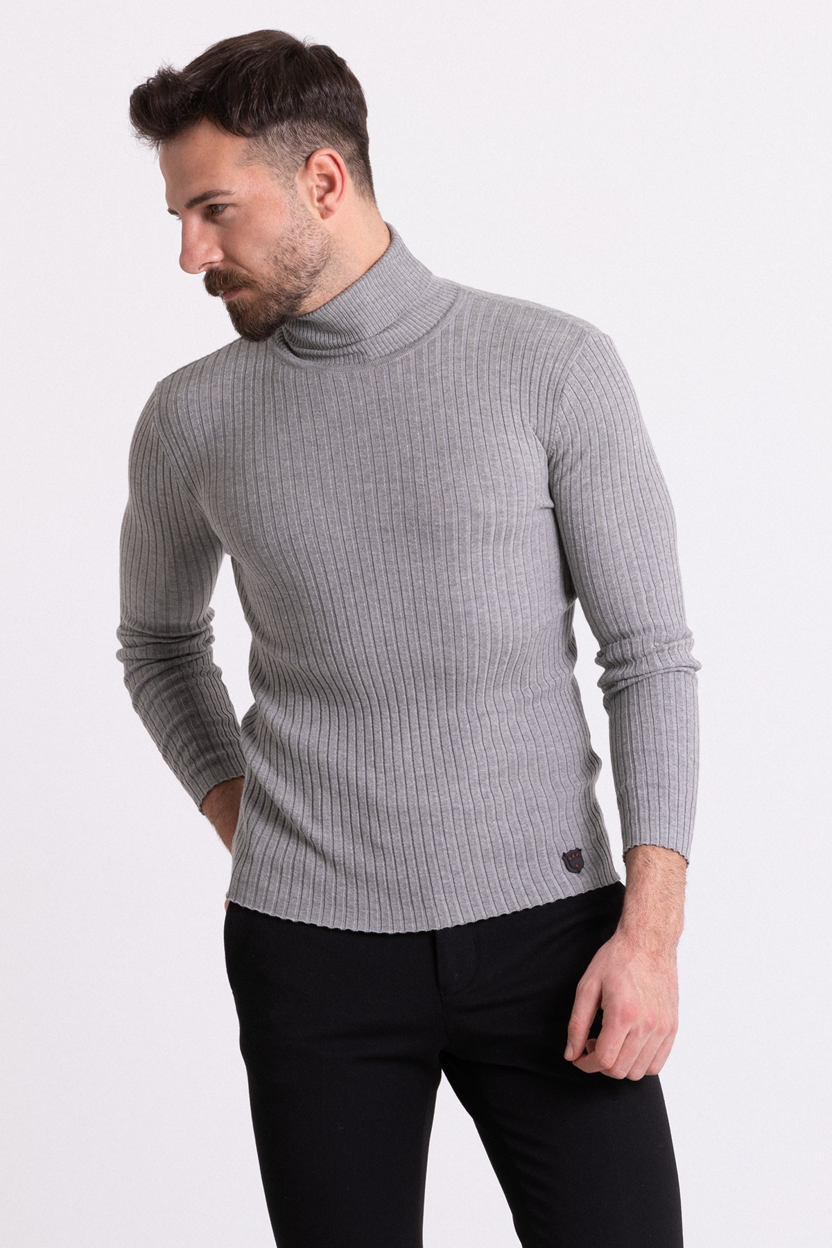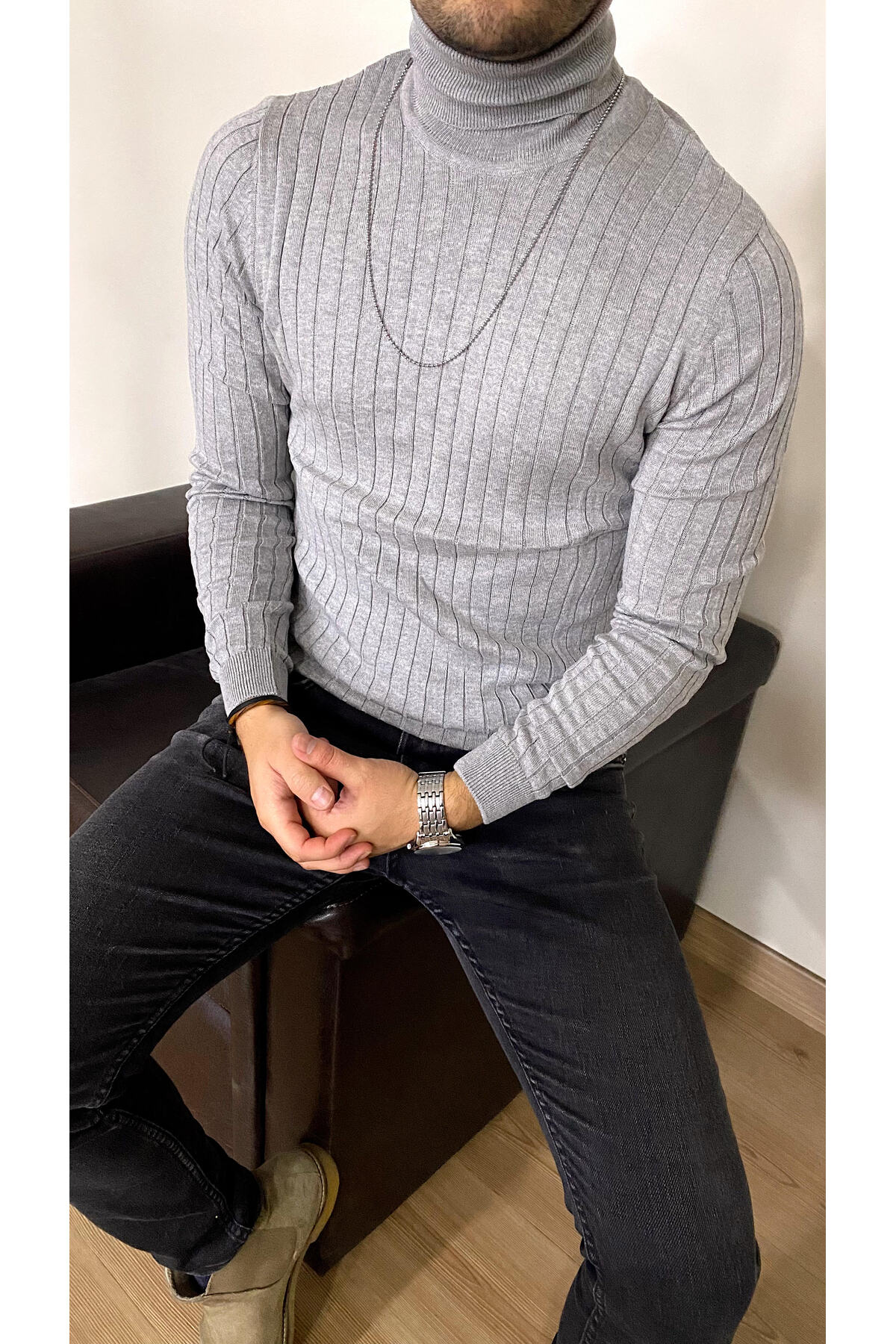 Çizgili Slim Fit Tam Balıkçı Yaka Erkek Triko Kazak Koyu Gri - 11321.19K Çizgili Slim Fit Tam Balıkçı Yaka Erkek Triko Kazak Koyu Gri - 11321.19K 2XL
