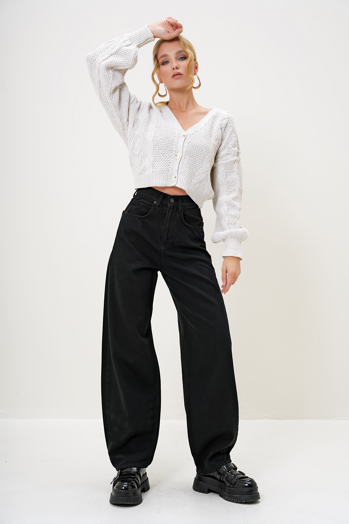 Kadın Siyah Yüksek Bel Bol Kesim Denim Pantolon ALC-X7759 Kadın Siyah Yüksek Bel Bol Kesim Denim Pantolon ALC-X7759 31