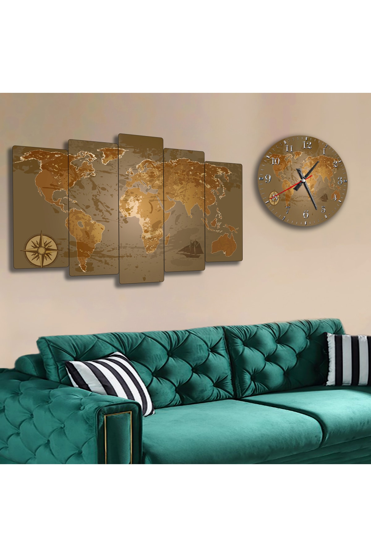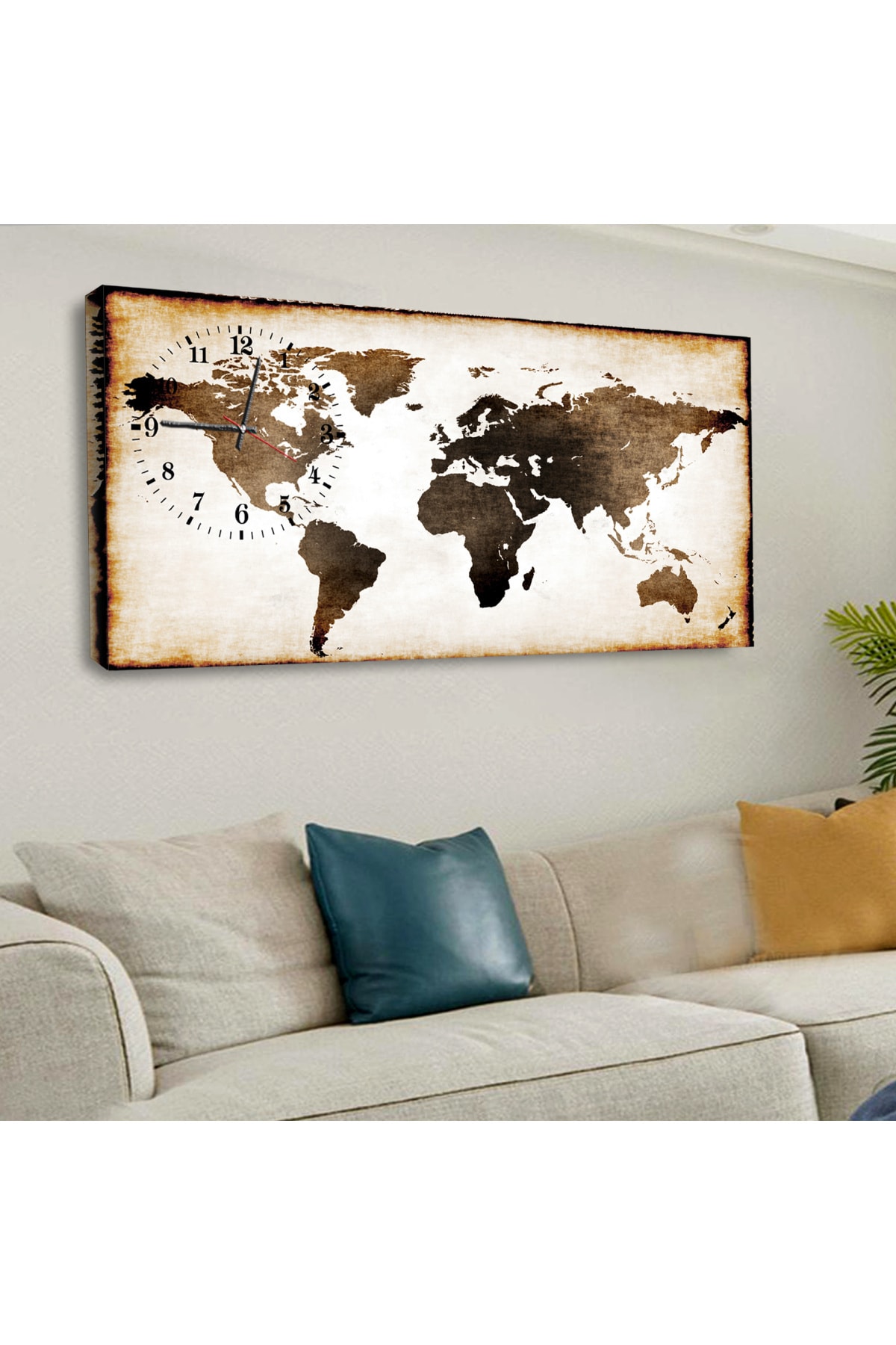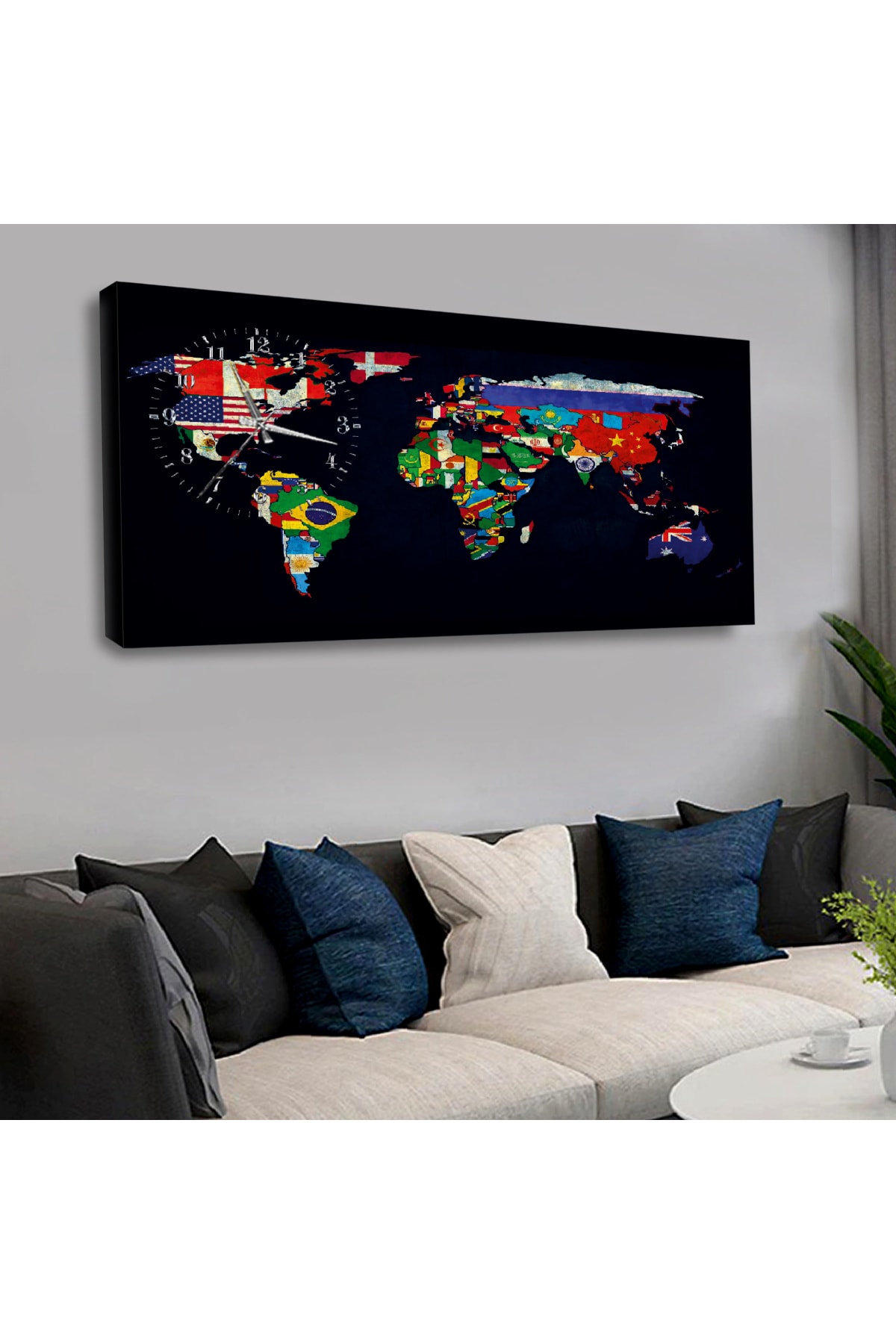 Kanvas Yeşil Arka Planlı Dünya Haritası Saatli Tablo Kanvas Yeşil Arka Planlı Dünya Haritası Saatli Tablo KNVSSKVS210 120 x 60