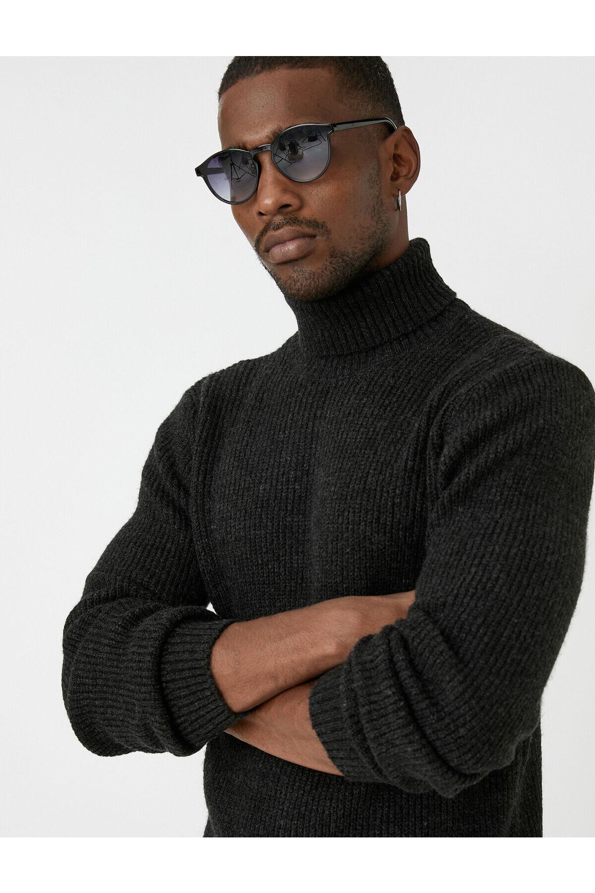 Erkek Balıkçı Yaka Antrasit Düz Triko Kazak Erkek Balıkçı Yaka Antrasit Düz Triko Kazak YLD-2028 2XL