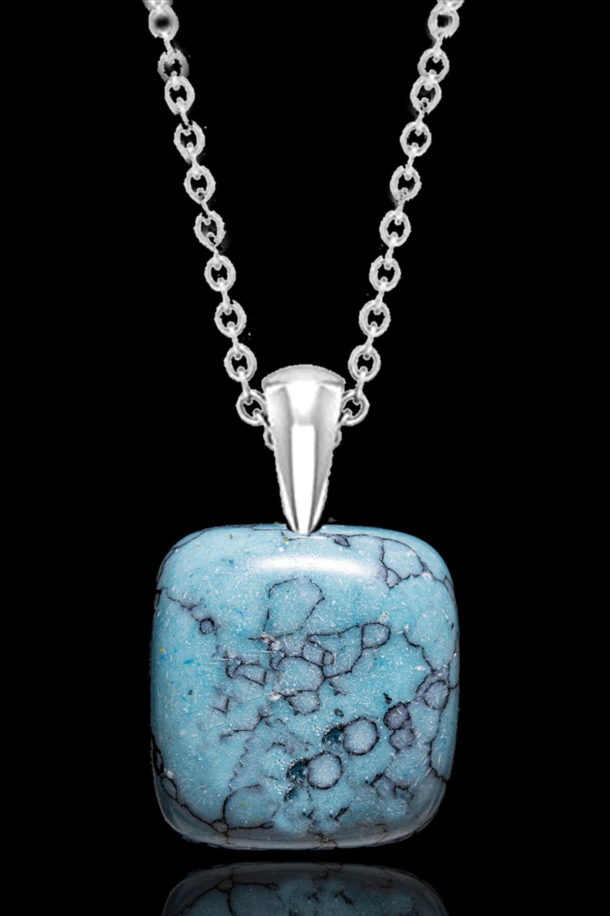 Sertifikalı Doğal Firuze Turkuaz Taşı Kolye Sertifikalı Doğal Firuze Turkuaz Taşı Kolye AGJPQS89 50 cm