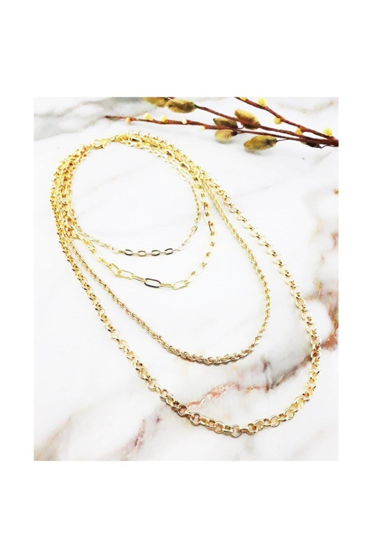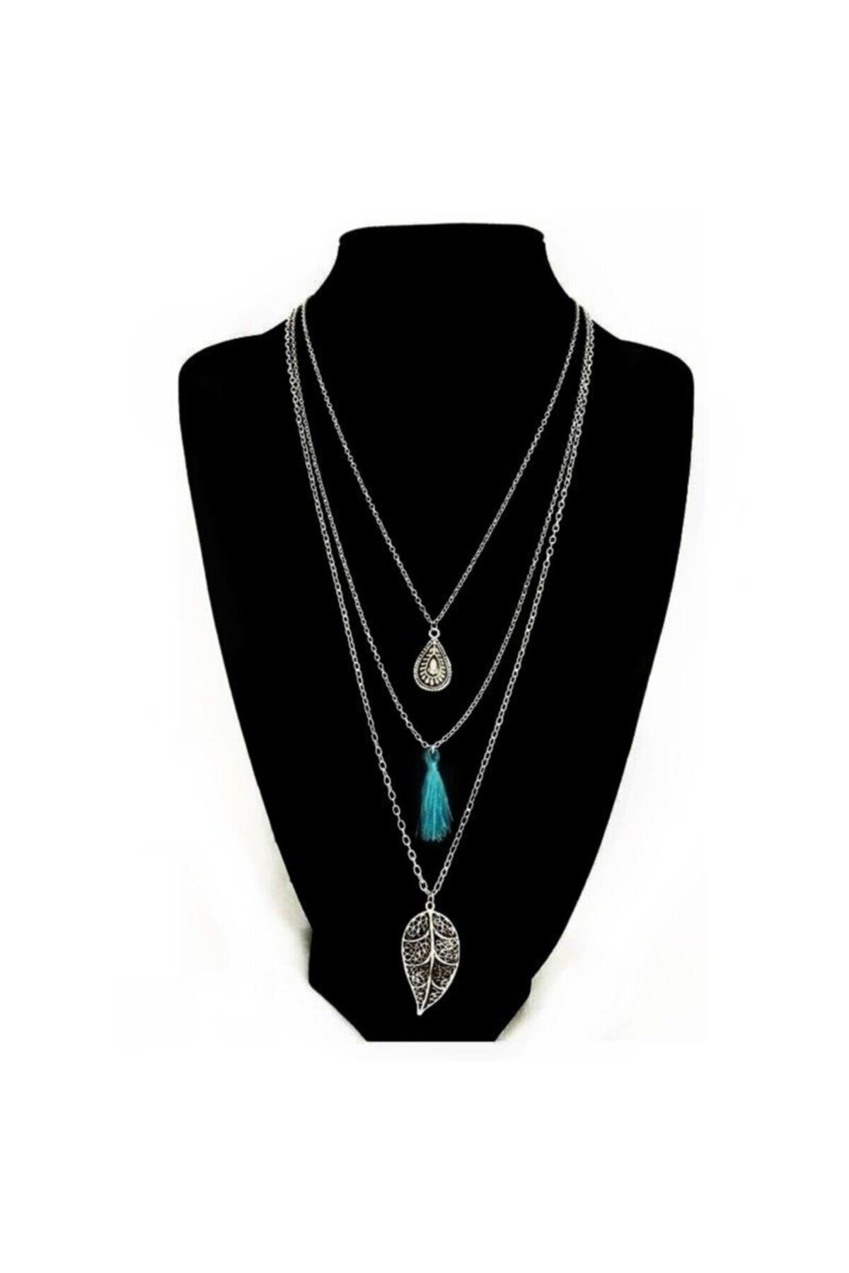 Gümüş Renk Kadın Çok Sıralı Zincir Kolye Gümüş Renk Kadın Çok Sıralı Zincir Kolye BS3496 50 cm