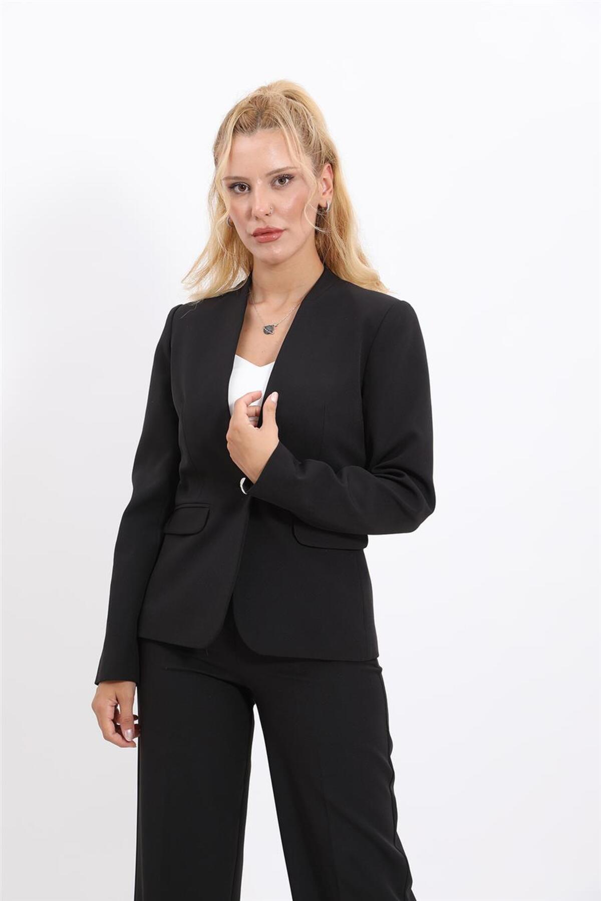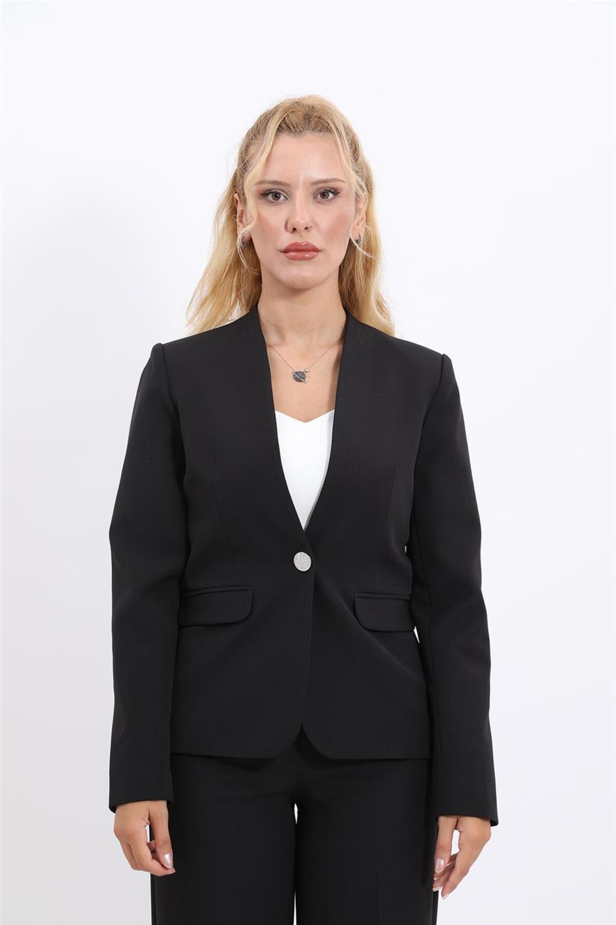 Büyük Beden - Yakasız Tek Düğmeli Ceket-Siyah Büyük Beden - Yakasız Tek Düğmeli Ceket-Siyah 1044100 52