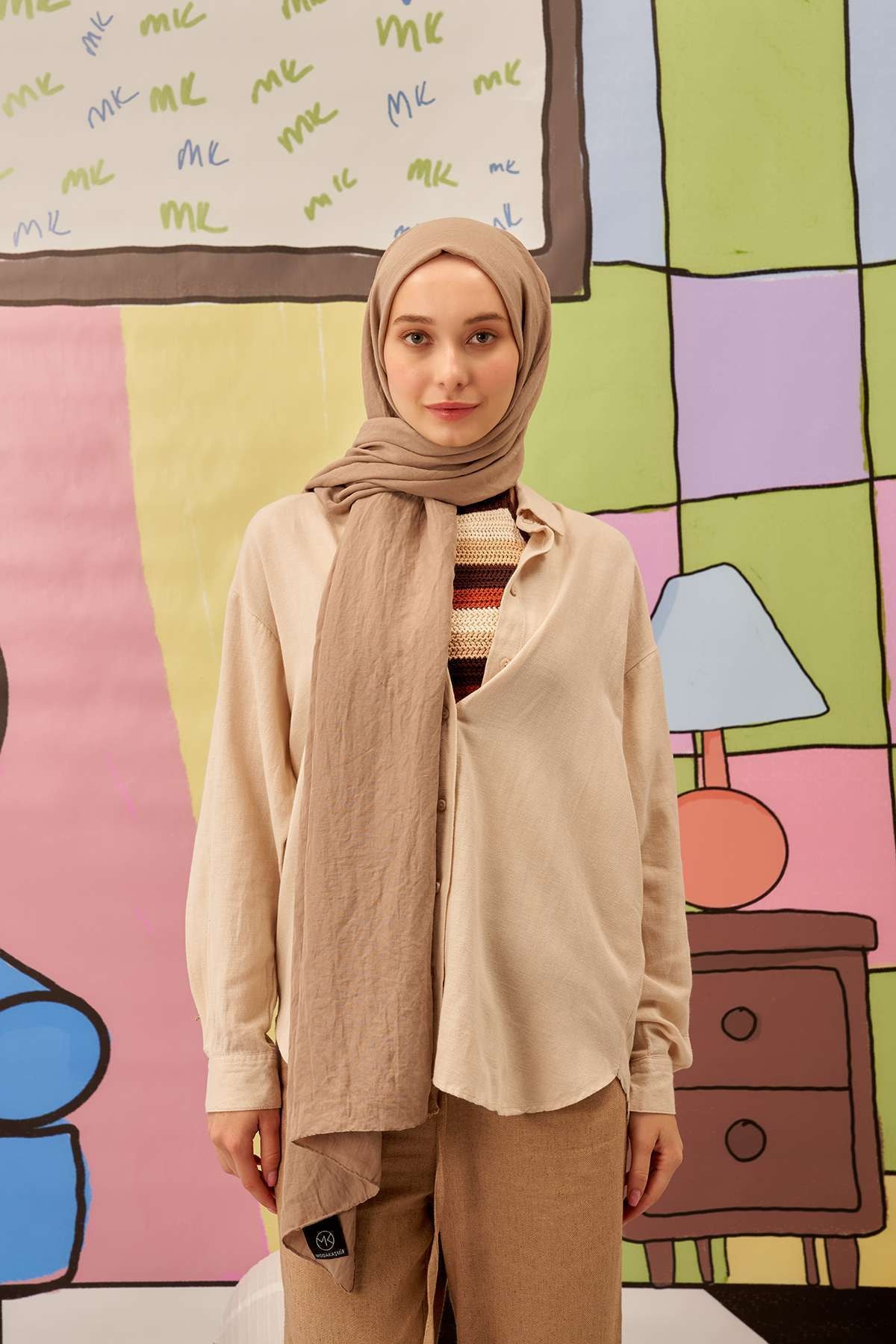 Vizon Pamuk Kraş Şal Vizon Pamuk Kraş Şal VİZON PAMUK KRAŞ EŞARP 80 x 180
